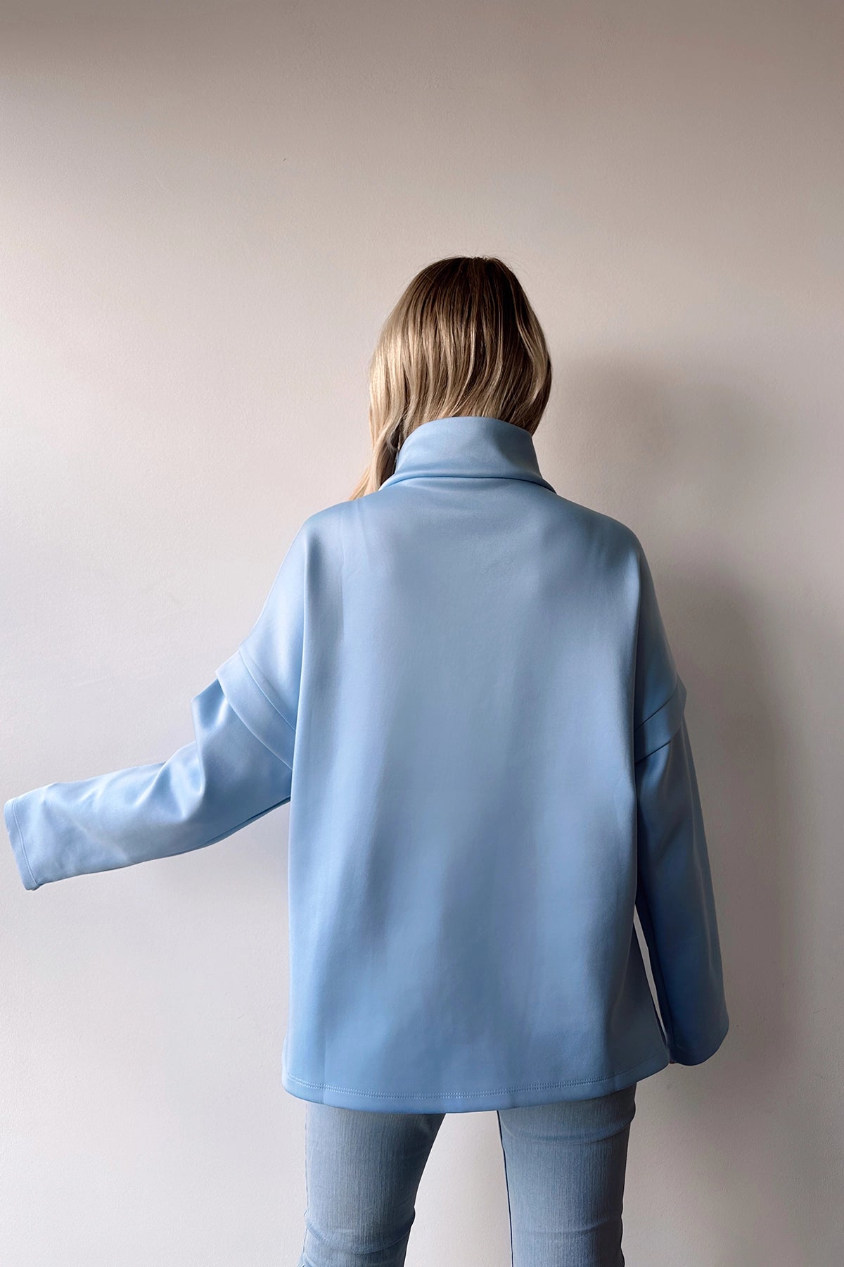 Blue Crew Neck Bird Eye Lace-up Scuba Sweatshirt BCPK-236000 - Fasano