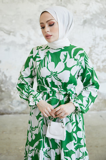 BNG Women Floral Pattern Hijab Dress Green - Clermont