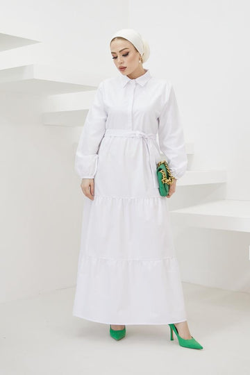 BNG Women Shirt Collar Buttoned Hijab Dress White - Clermont