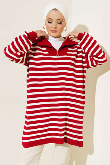 BNG Women - Striped Tunic with Zipper on the Neck Red - Clermont