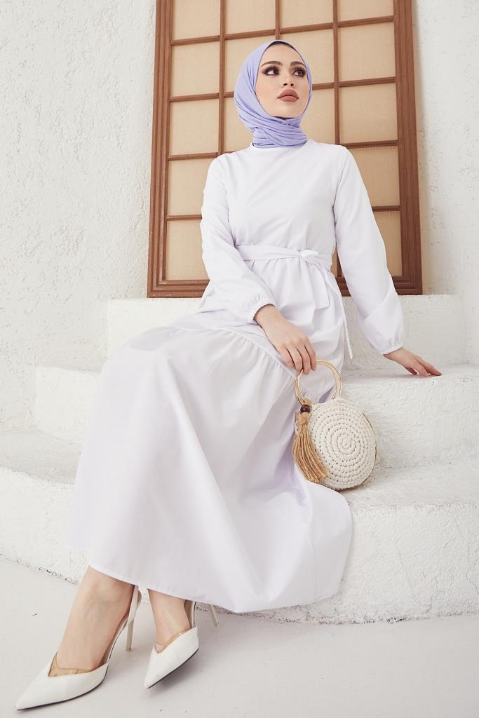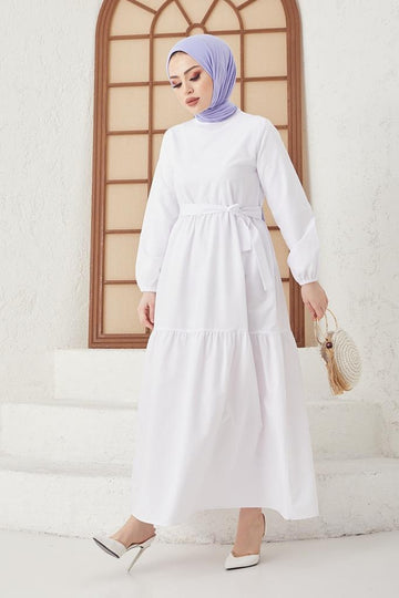 BNG Women Zero Collar Belted Hijab Dress White - Clermont