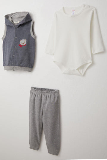 BRE Breeze Baby Boy Bodysuit 3-Piece Set Cute Bear Embroidered Hooded 4 Months Year, Navy Blue - Owings Mills