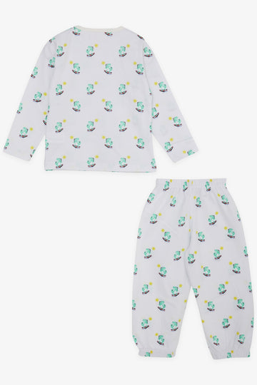 BRE Breeze Baby Boy Pajama Set Surfer Dinosaur Patterned 9 Months-3 Years, White - Darlington