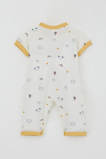 BRE Breeze Baby Boy Short Sleeve Romper Sky Themed Animal Patterned 0-6 Months, Ecru - Derby
