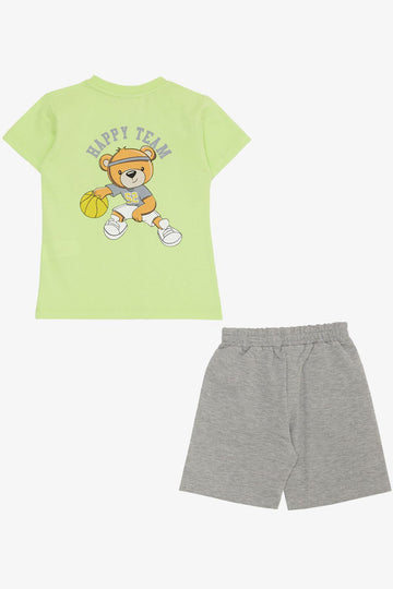 BRE Breeze Boys' Shorts Set Happy Team Themed Bear Printed 2-6 Years, Pistachio Green - Kozáni