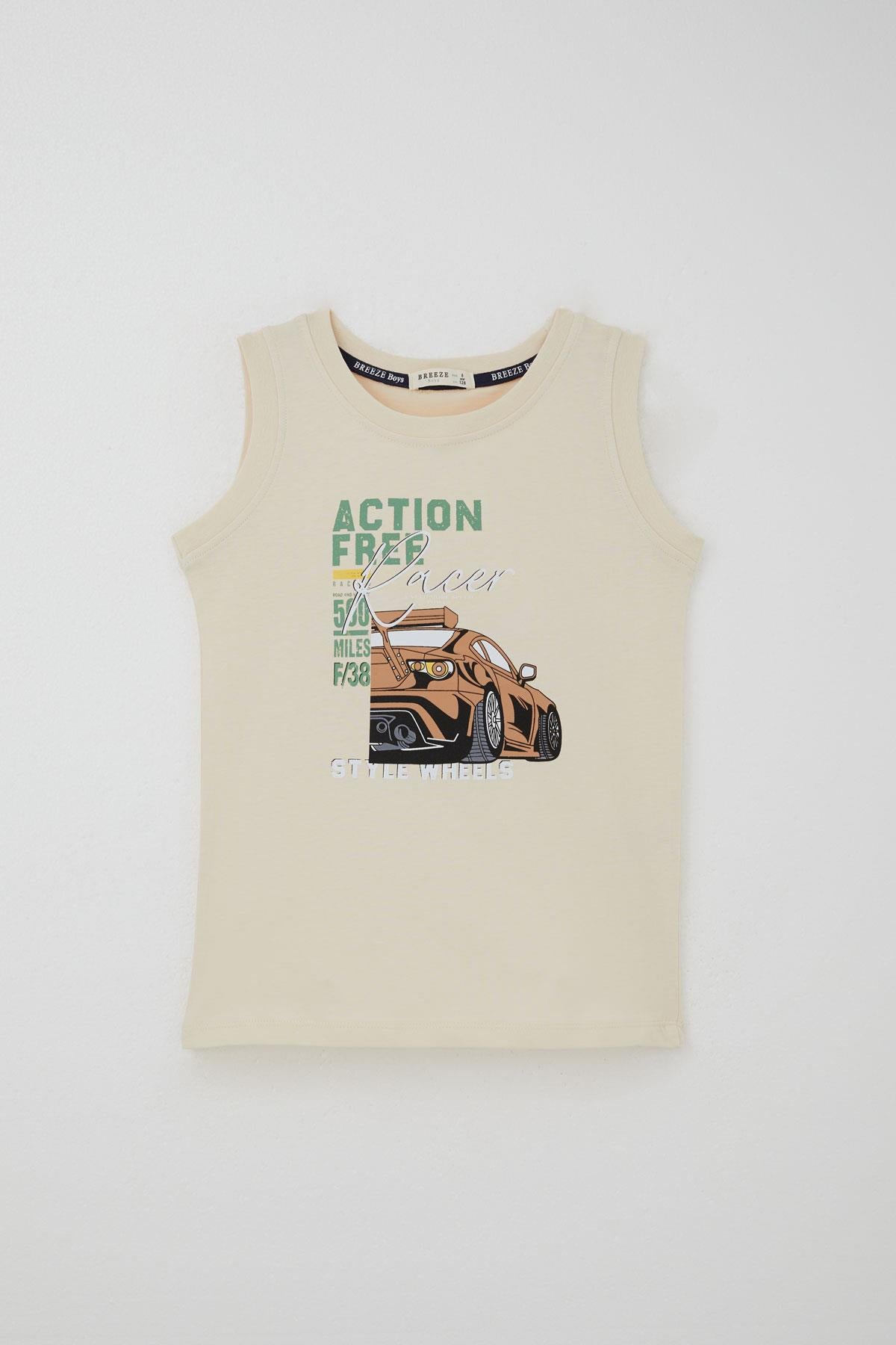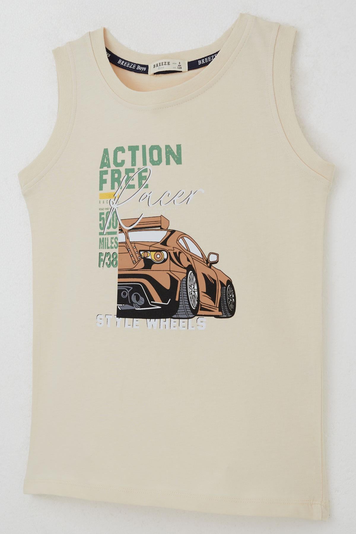 BRE Breeze Boys' Shorts Set Zero Sleeve Hero of the Race Track Car Printed 50 Years, Cream - Biella