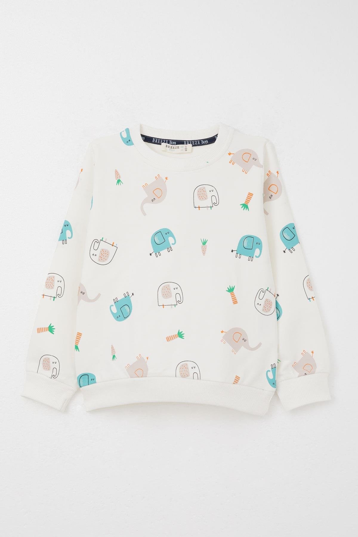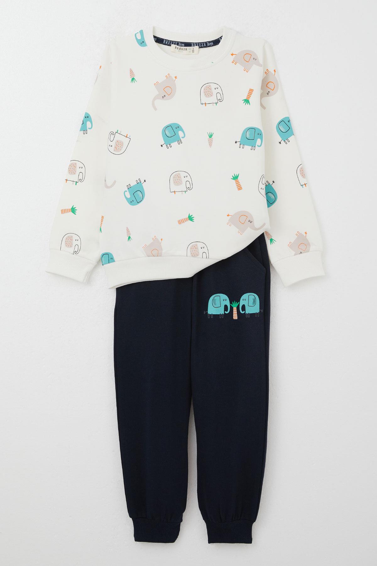 BRE Breeze Boys' Sweat Suit Cute Elephant Patterned 1-4 Years, Ecru - Grand Island