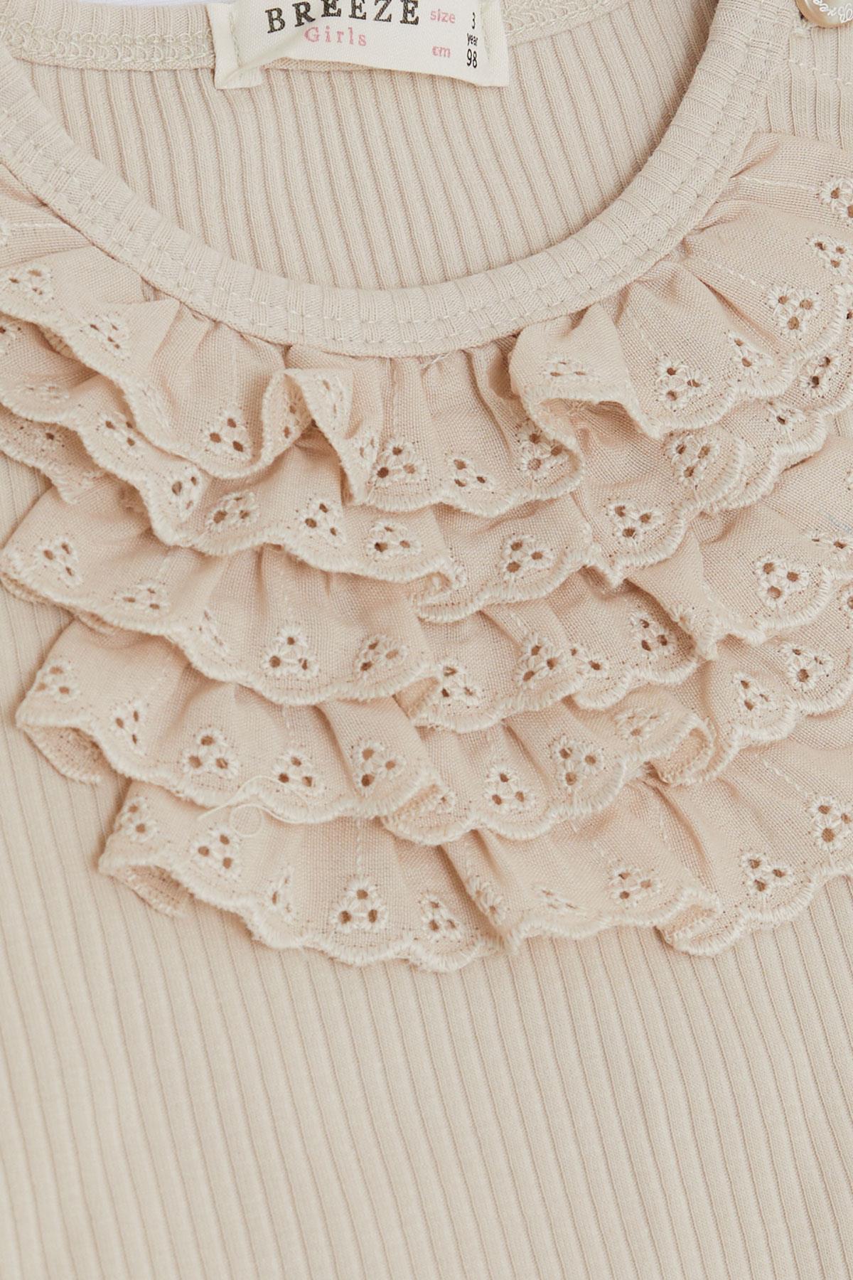 BRE Breeze Girl Baby T-shirt with Lace Embroidered Emblem 9 Months-3 Years, Beige - Amberg