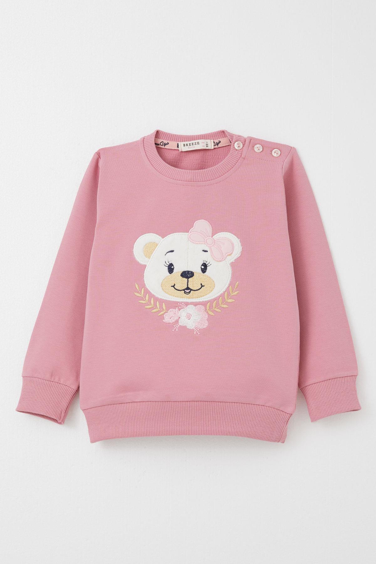 BRE Breeze Girl Baby Tracksuit Cute Bear Embroidered Floral 9 Months-3 Years, Rose Pink - San Clemente