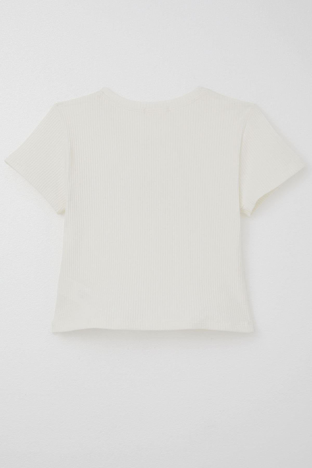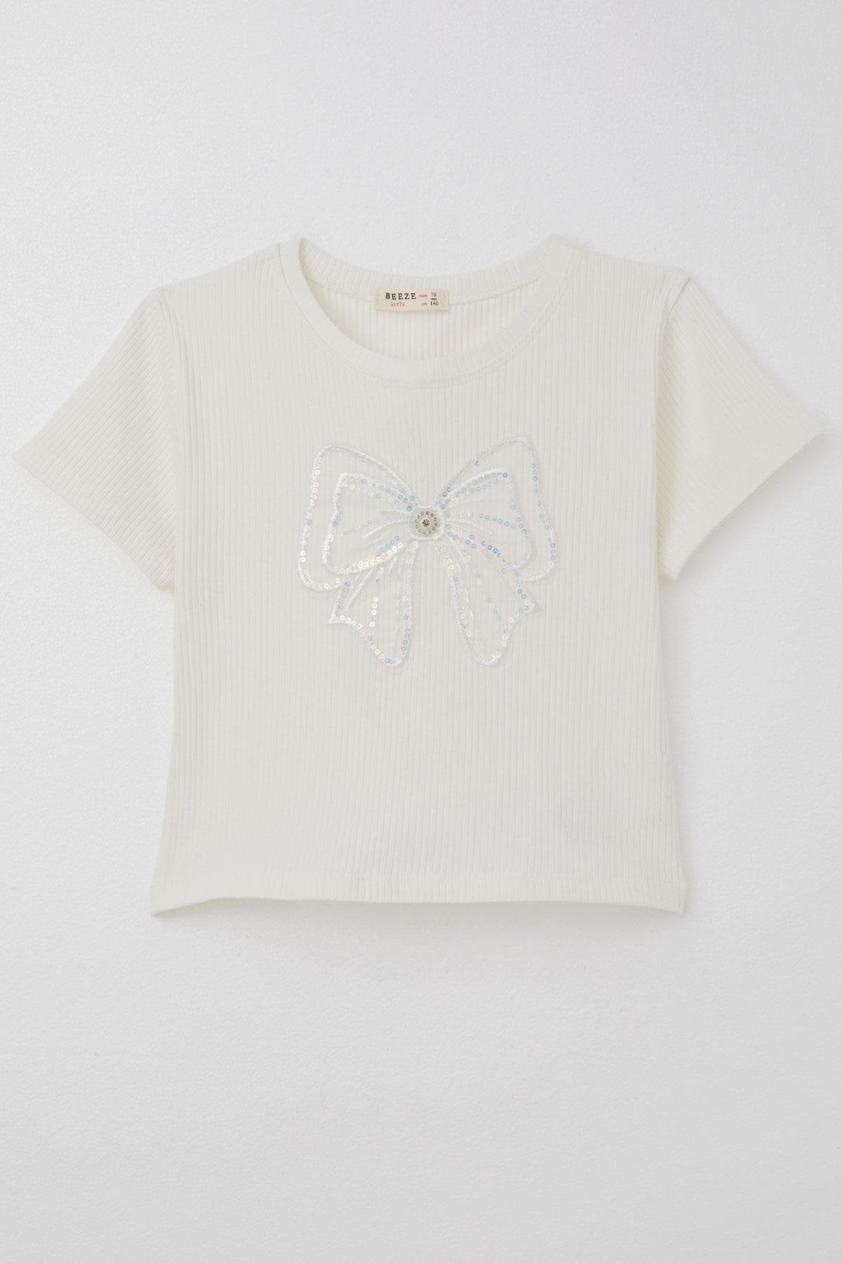 BRE Breeze Girl Child Crop T-Shirt with Bow Emblem Accessory, 94 Years, Ecru - Rheine