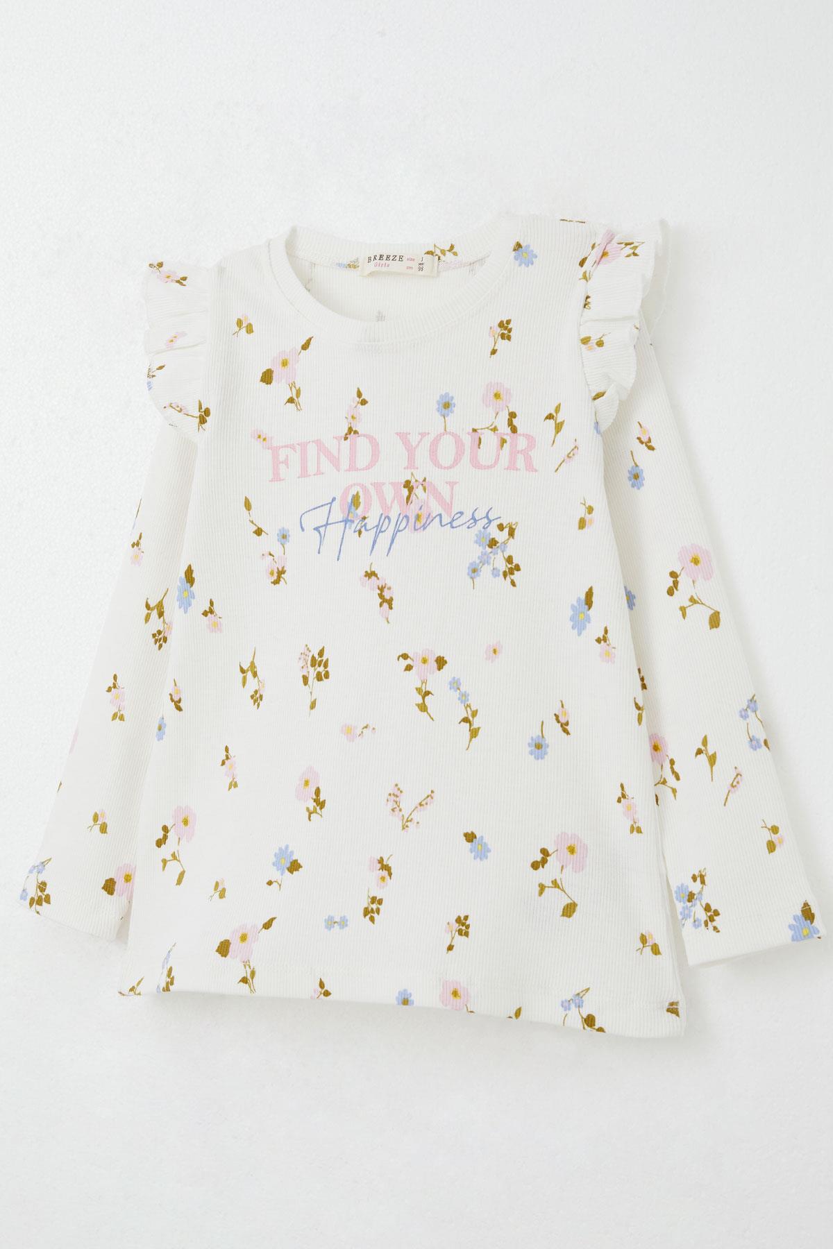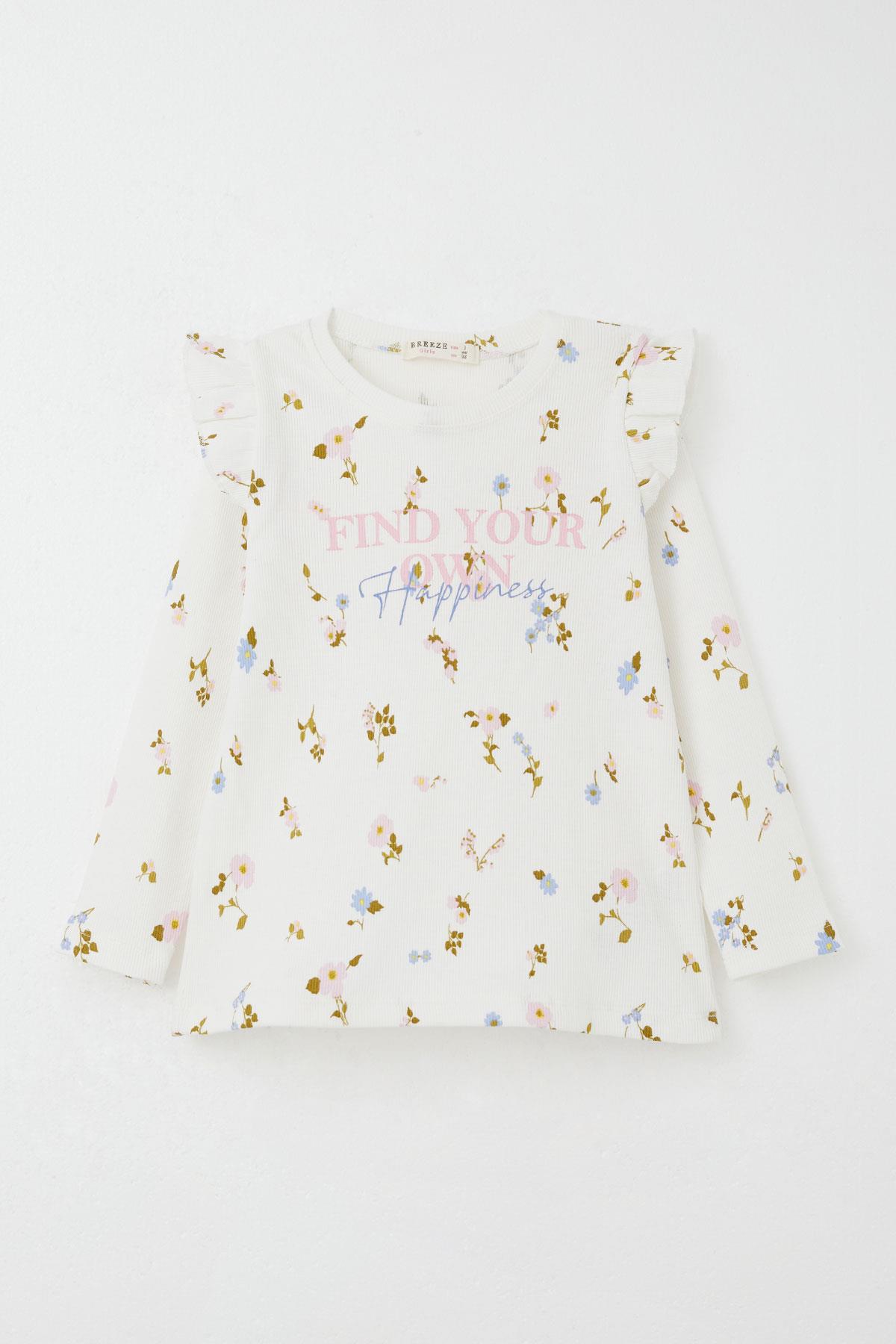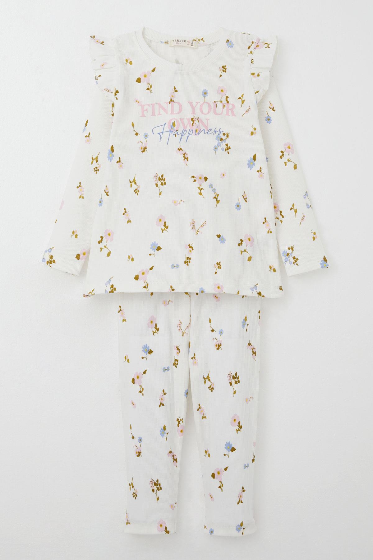 BRE Breeze Girl Child Leggings Set Colorful Flower Patterned Ruffled Shoulder 2-6 Years, Ecru - Ciudad Santa Catarina