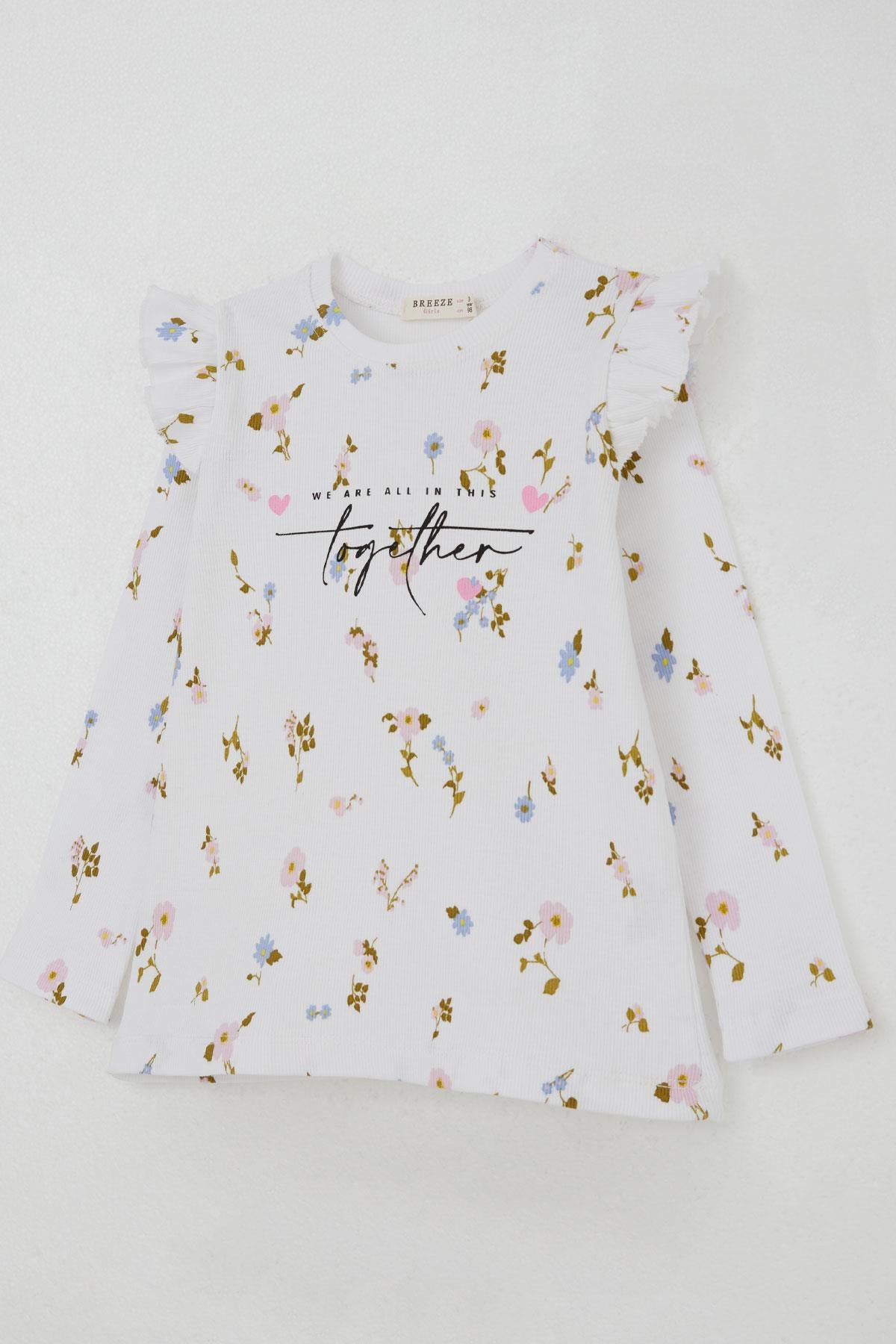 BRE Breeze Girl Child Leggings Set Colorful Flower Patterned Ruffled Shoulder 2-6 Years, White - Nettuno