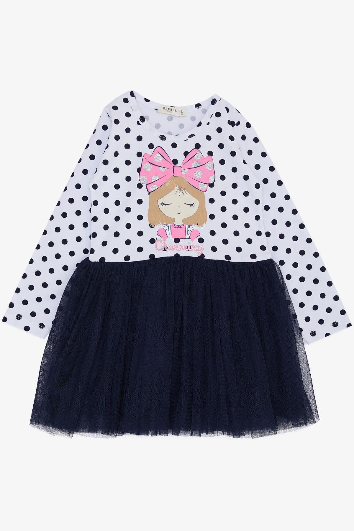 BRE Breeze Girl Child Long Sleeve Dress Thoughtful Girl Printed Polka Dot 2-6 Years, White - Watsonville