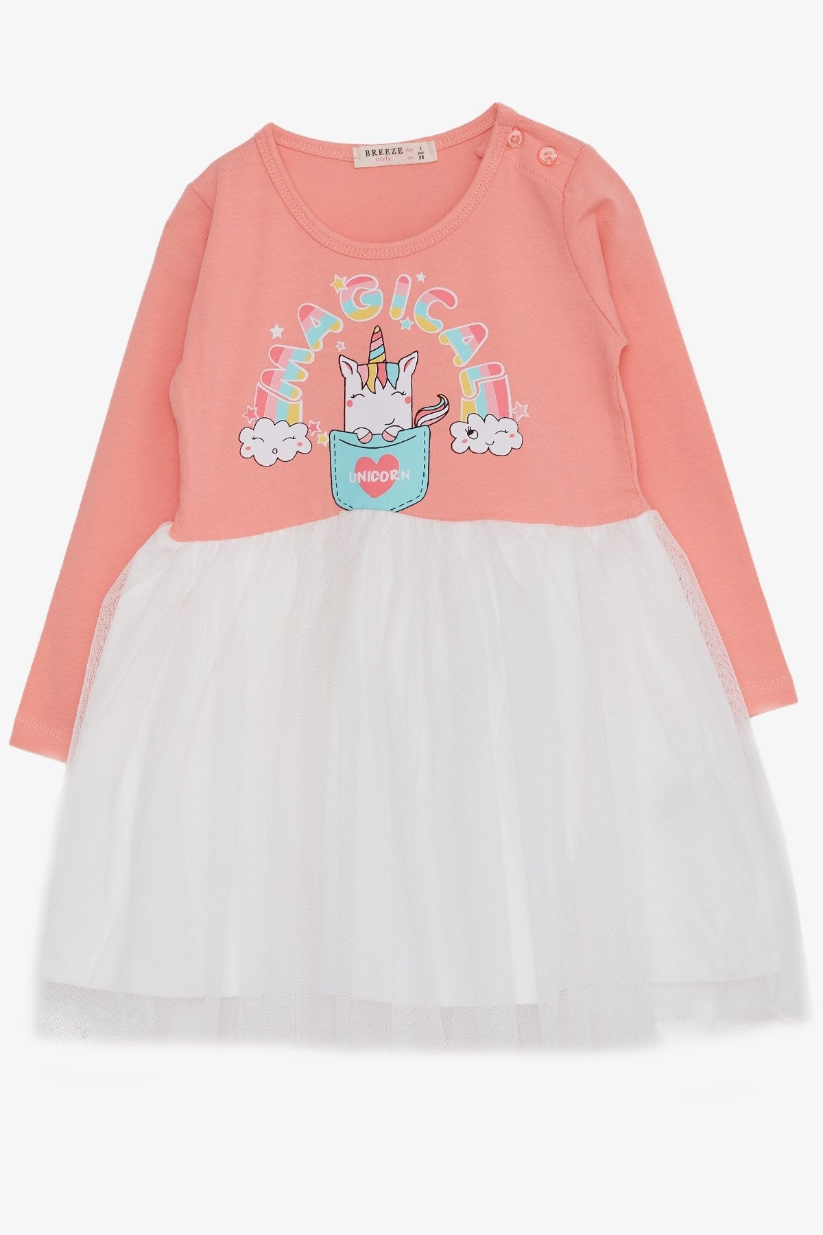 BRE Breeze Girl Child Long Sleeve Dress Unicorn Printed 1.5-5 Years, Salmon - Grosseto