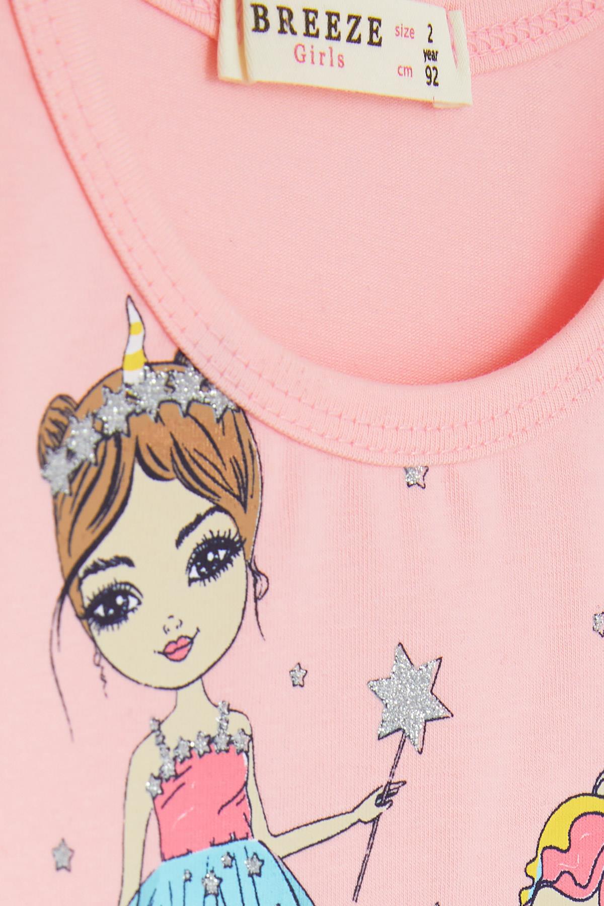 BRE Breeze Girl Child Long Sleeve Dress Unicorn Printed 2-6 Years, Powder - Hempstead