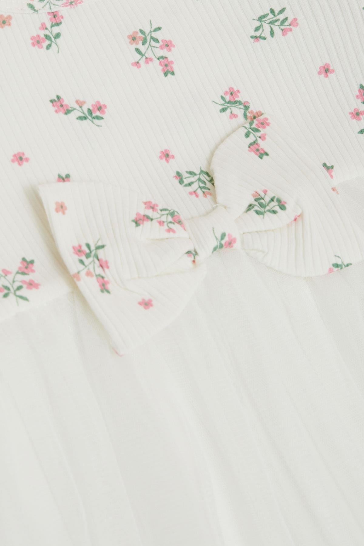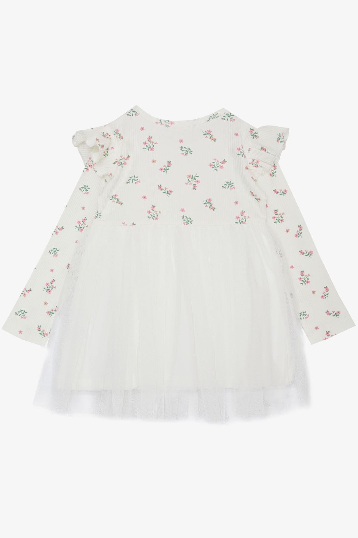 BRE Breeze Girl Child Long Sleeve Dress with Flower Pattern Ruffled Bow 3-7 Years, Ecru - West Sacramento
