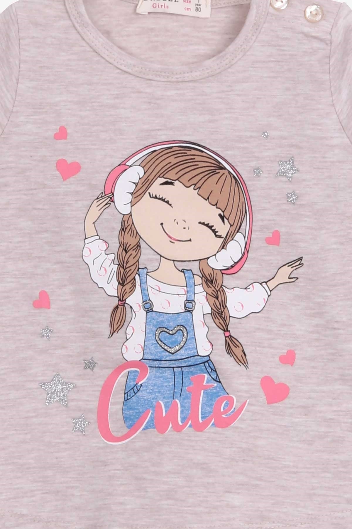 BRE Breeze Girl Child Long Sleeve T-Shirt Cute Girl Printed 1-4 Years, Beige Melange - Annemasse