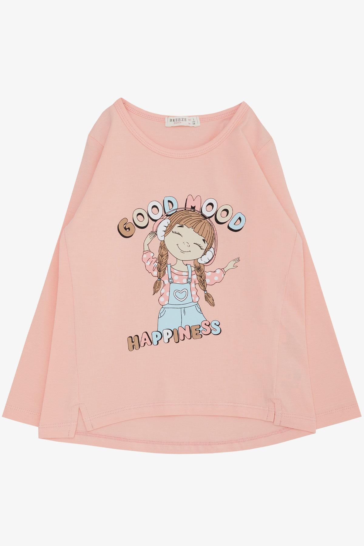 BRE Breeze Girl Child Long Sleeve T-Shirt Happy Girl Listening to Music Printed 3-8 Years, Salmon - Bundaberg