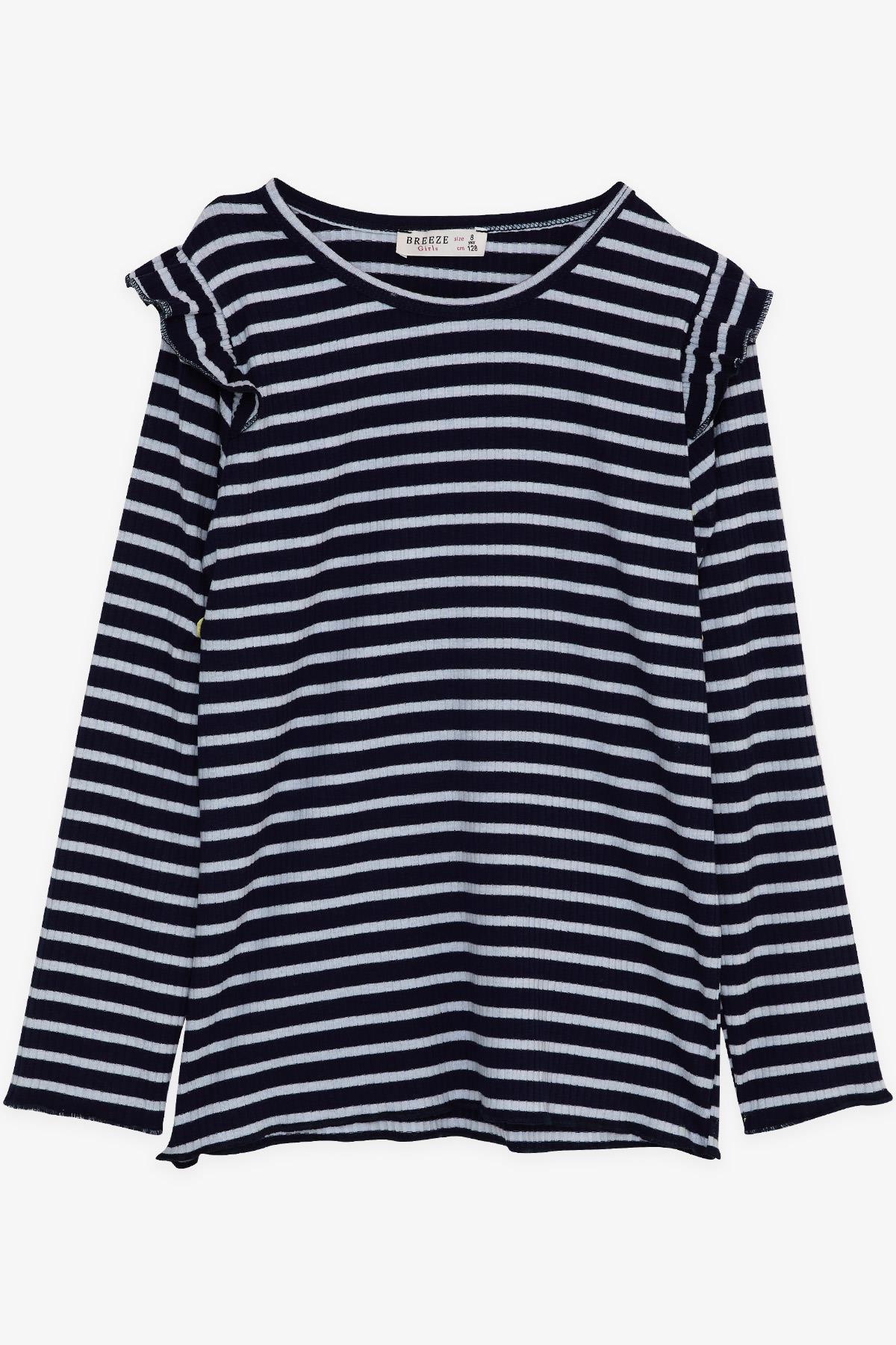 BRE Breeze Girl Child Long Sleeve T-Shirt Striped Ruffled Shoulder 62 Years, Navy Blue - Bronx