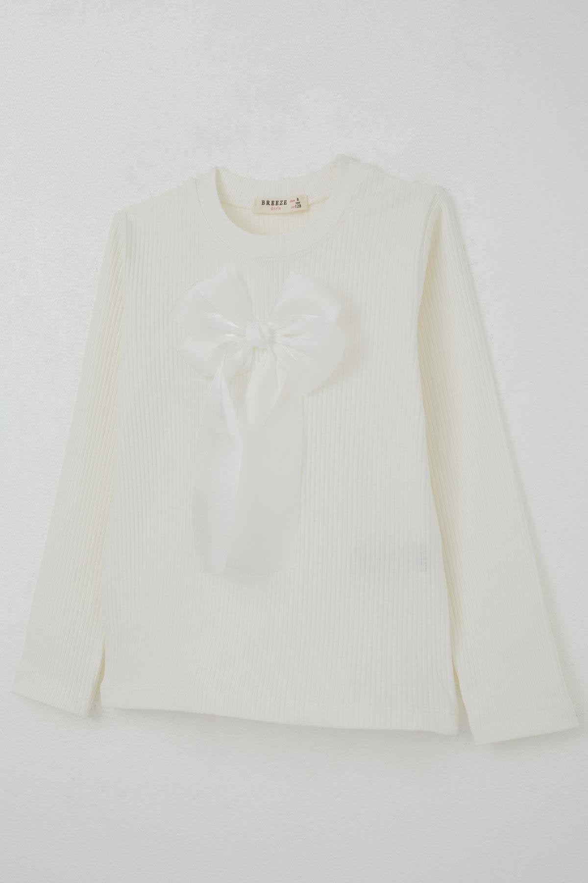 BRE Breeze Girl Child Long Sleeve T-Shirt with Bow Accessory 82 Years, Ecru - Cutler Bay