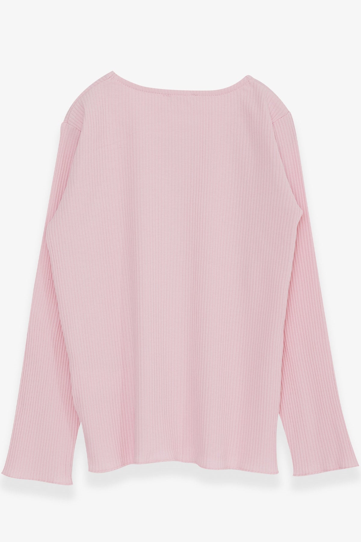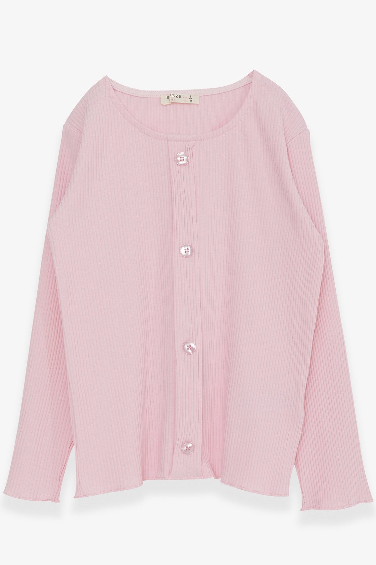 BRE Breeze Girl Child Long Sleeve T-Shirt with Button Accessory, 84 Years, Powder - Pylaía