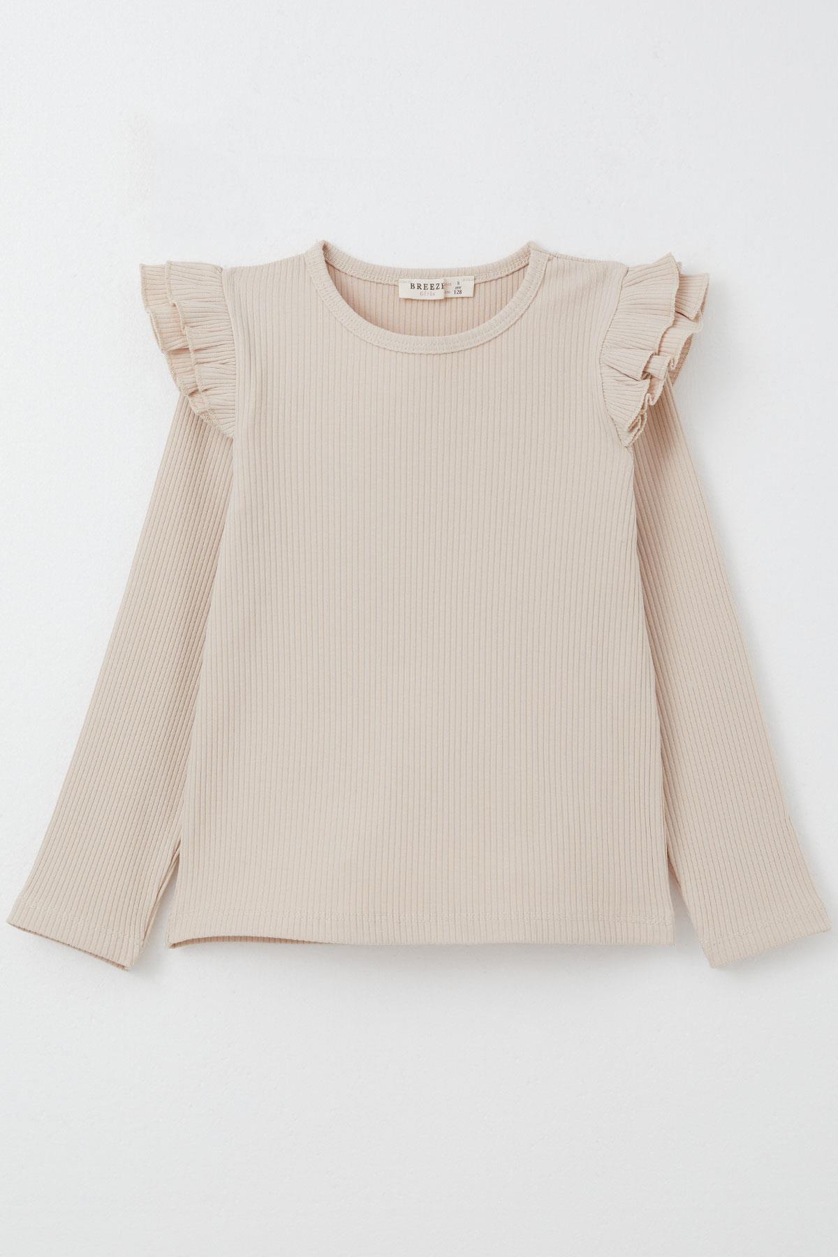 BRE Breeze Girl Child Long Sleeve T-Shirt with Frilled Shoulders 50 Years, Beige - Leith