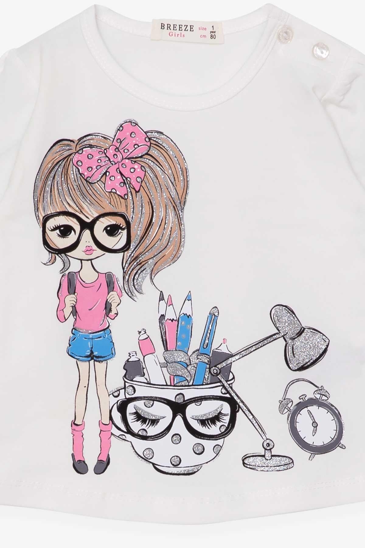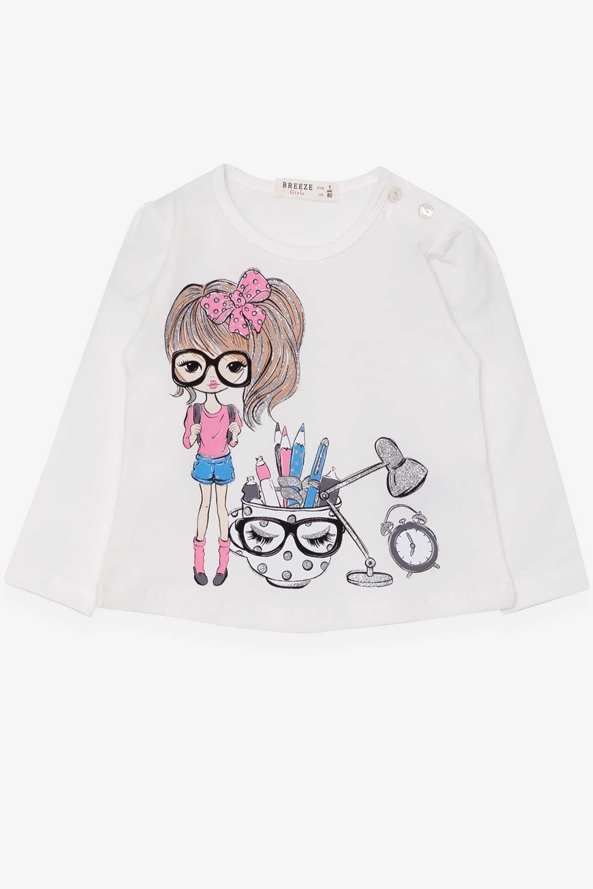 BRE Breeze Girl Child Long Sleeve T-Shirt with Painter Girl Print, 1-4 Years, Ecru - Guadalupe