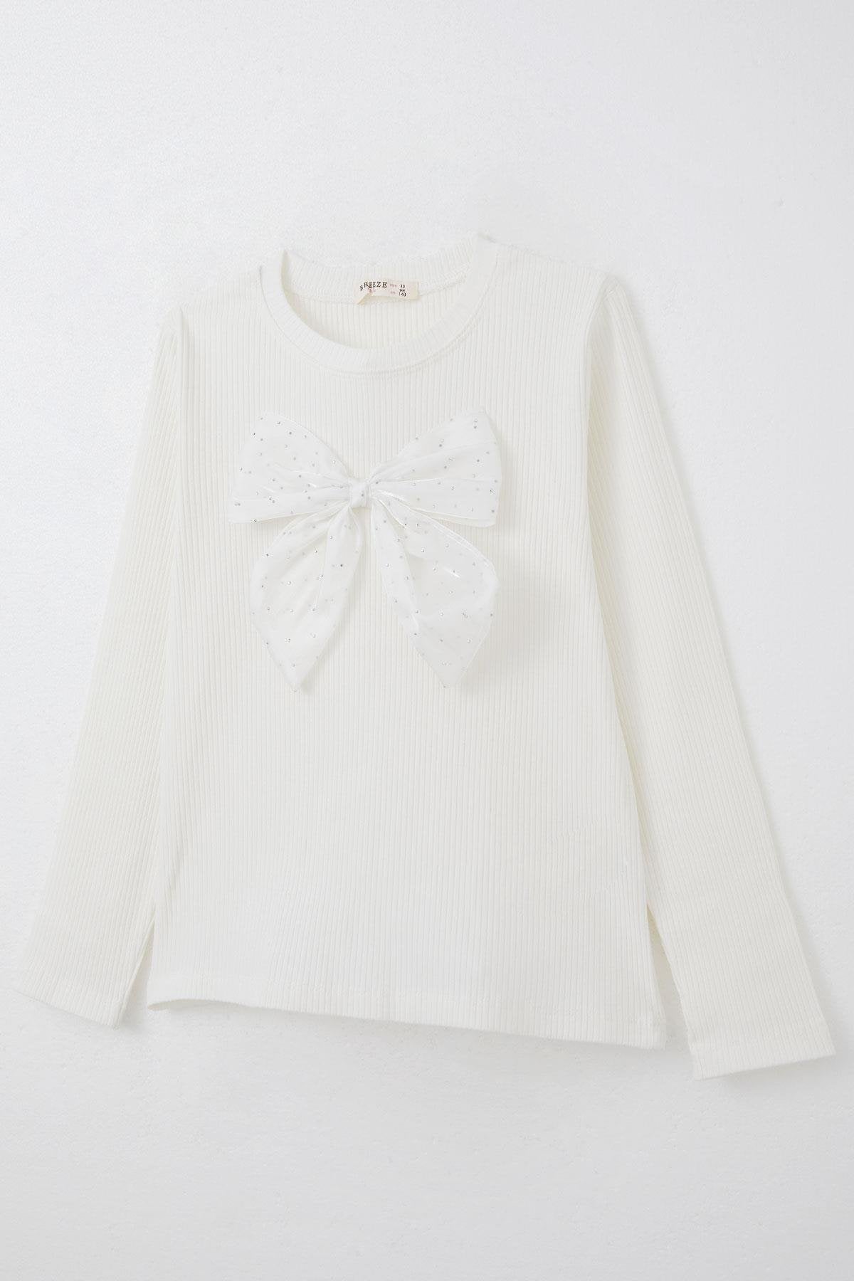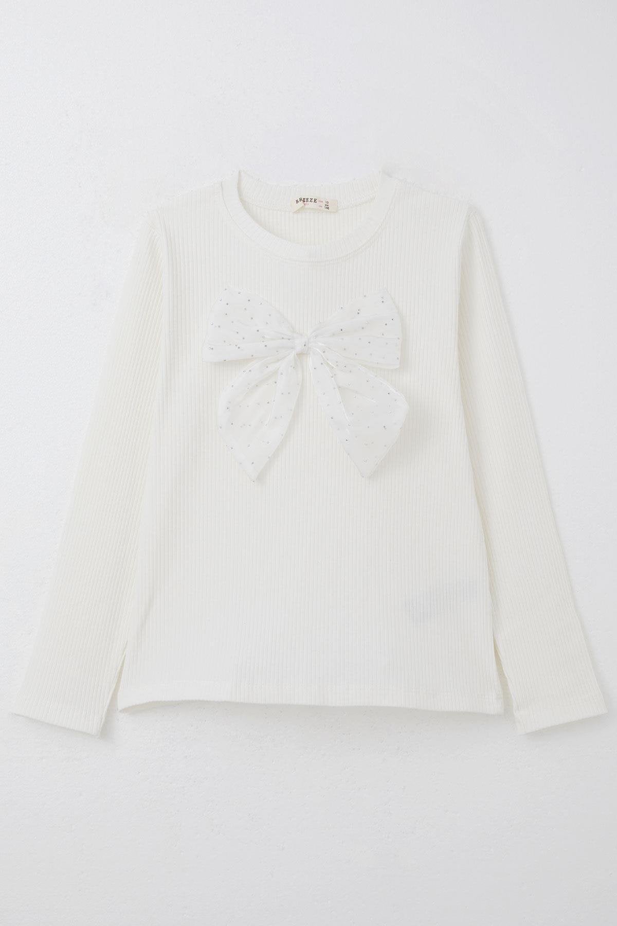 BRE Breeze Girl Child Long Sleeve T-Shirt with Rhinestone Bow Accessory, 94 Years, Ecru - Kirchheim unter Teck