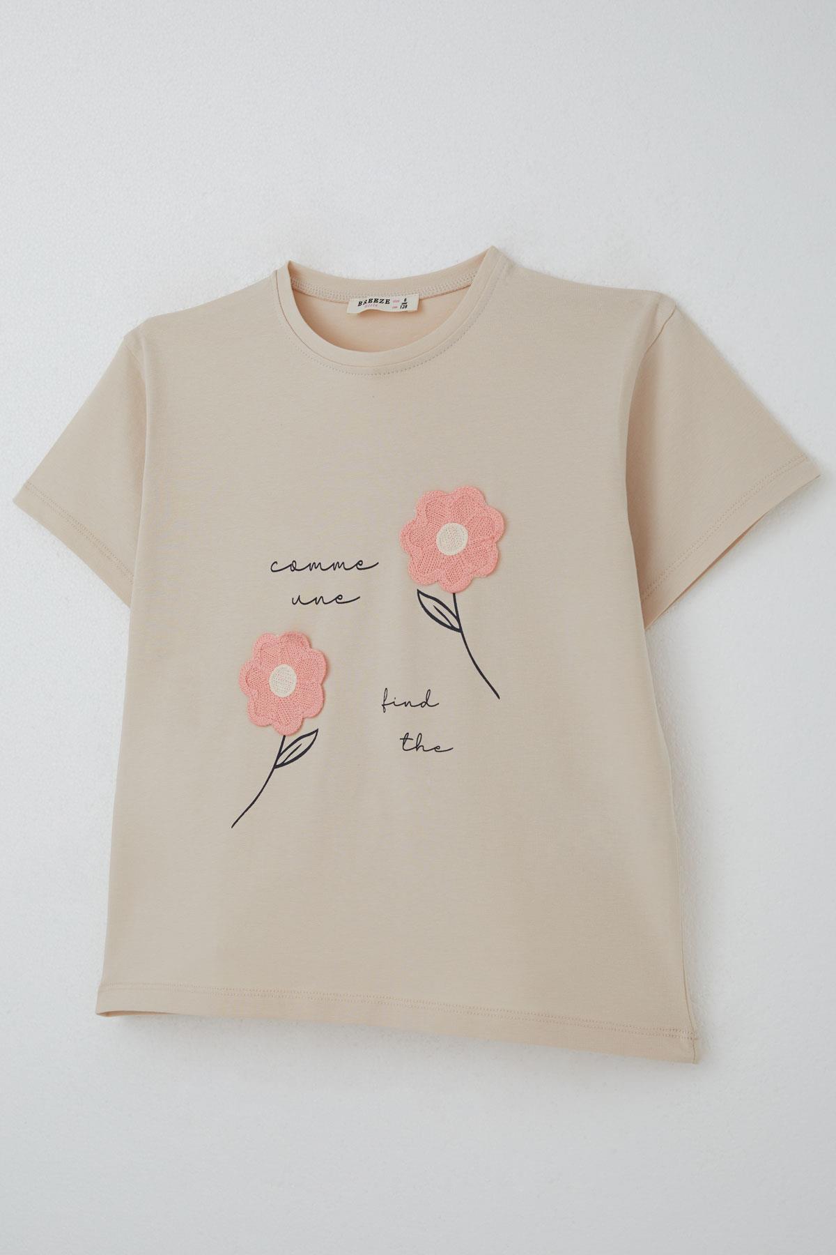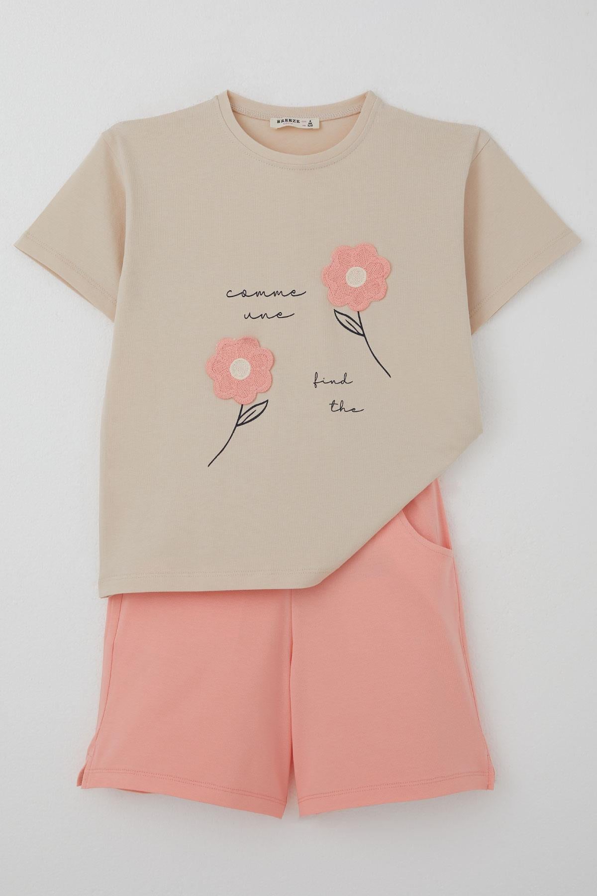 BRE Breeze Girl Child Shorts Set Knitted Flower Embroidered 62 Years, Beige - Irún