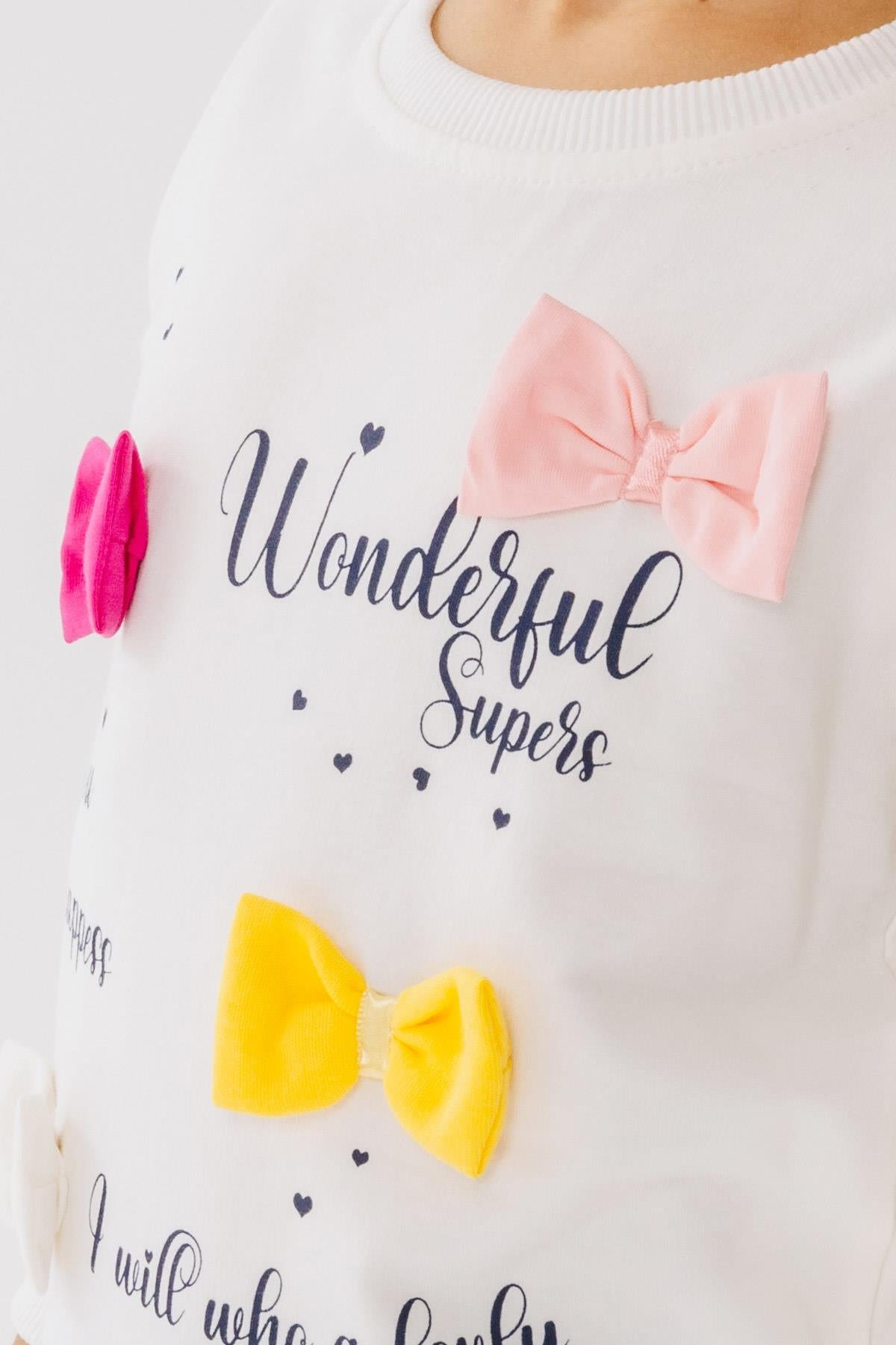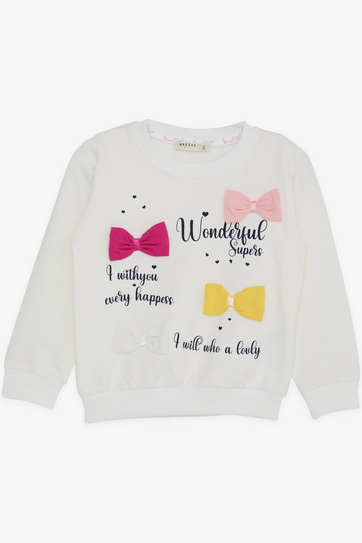 BRE Breeze Girl Child Sweatshirt Colorful Bow Accessorized Printed Text 3-8 Years, Ecru - Mettmann