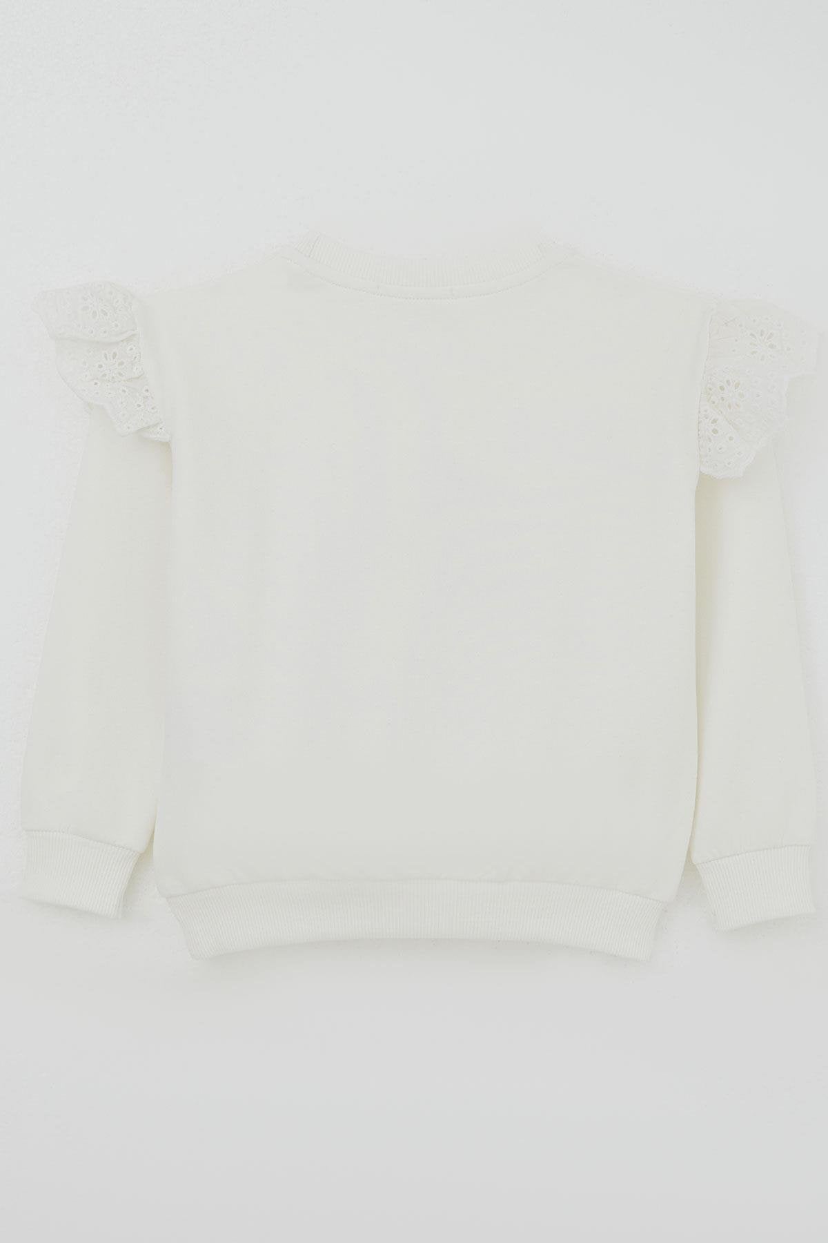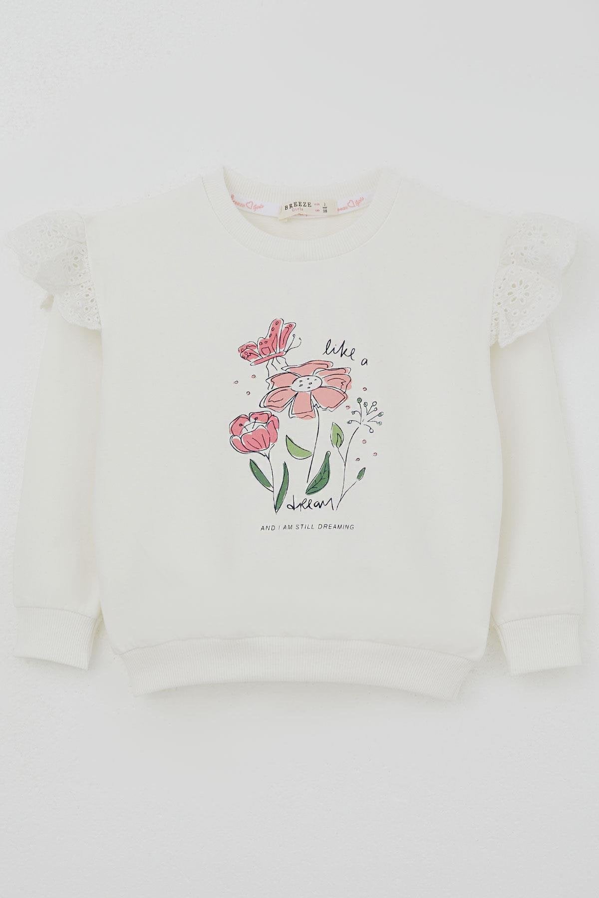 BRE Breeze Girl Child Sweatshirt with Flower Embroidery Detailed Flower Printed 2-6 Years, Ecru - Sesto Fiorentino