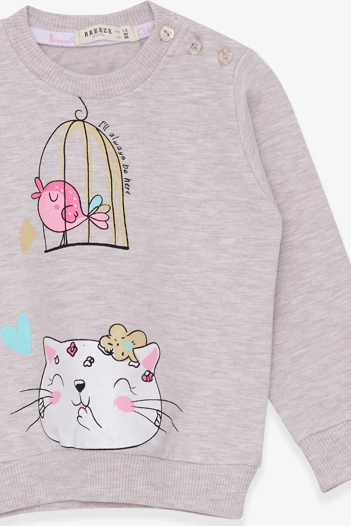 BRE Breeze Girl Child Sweatshirt with Glittery Kitty Print, 1.5-5 Years, Beige Melange - Pisa