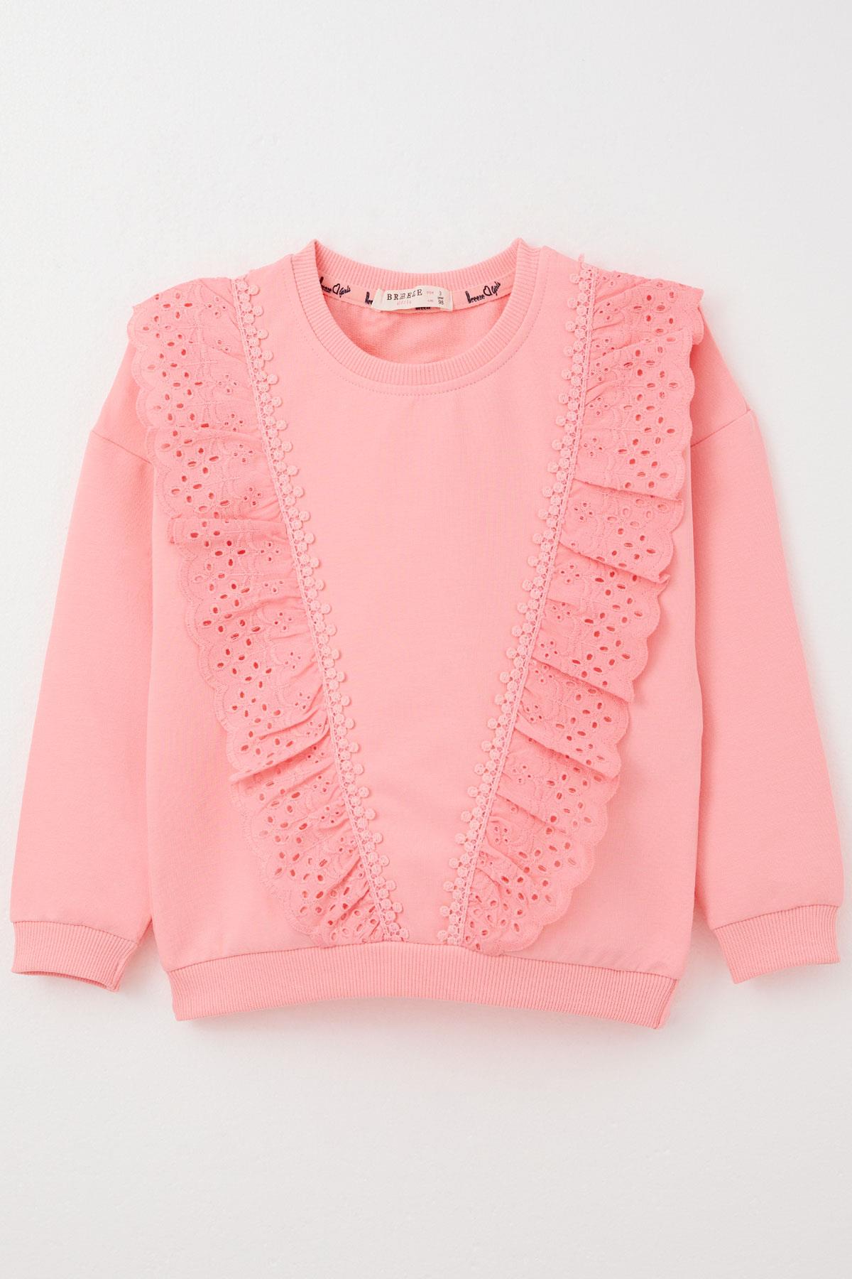 BRE Breeze Girl Child Sweatshirt with Lace 1.5-5 Years, Pink - Wayne