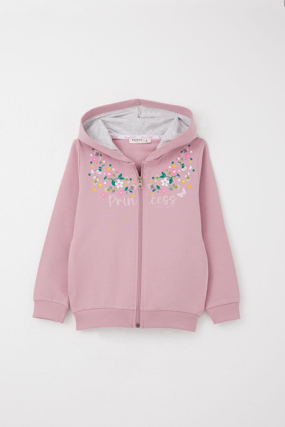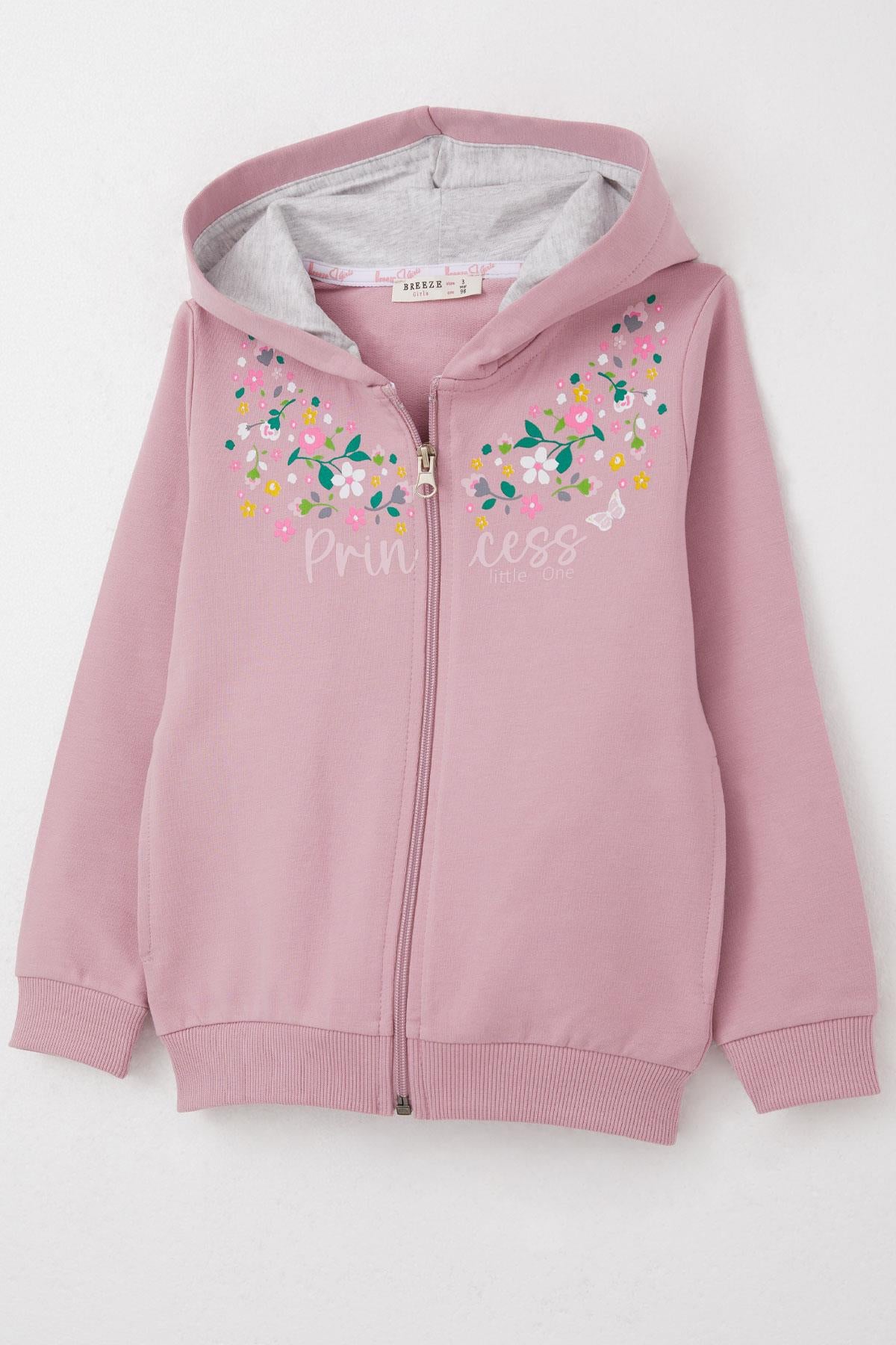 BRE Breeze Girl Child Tracksuit Colorful Flower Patterned Zippered 1.5-5 Years, Rose Pink - San Juan