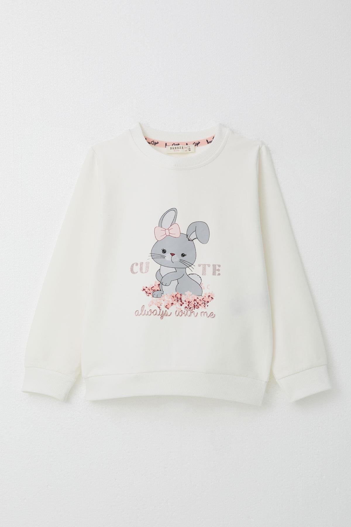 BRE Breeze Girl Child Tracksuit with Bow Cute Bunny Printed 1-4 Years, Beige - Marbella