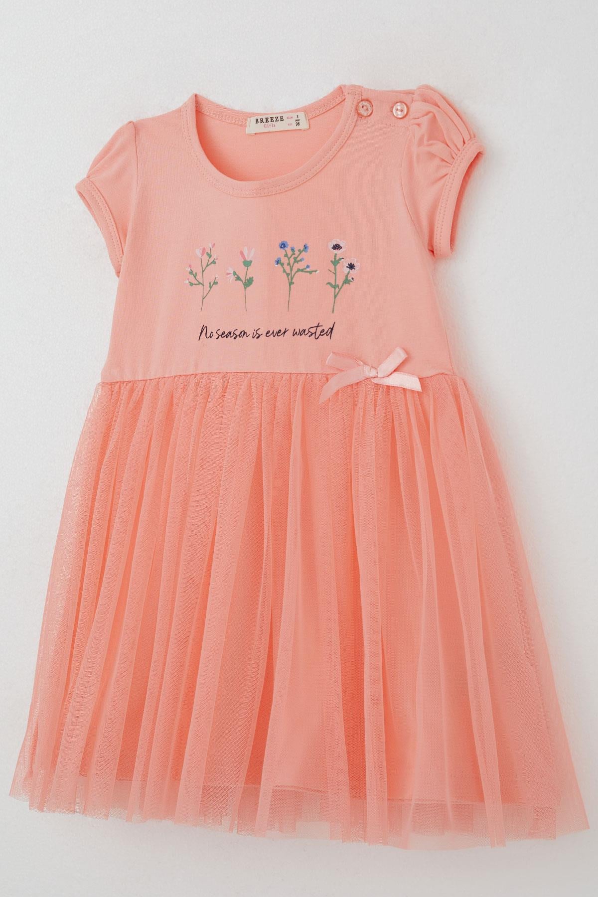 BRE Breeze Girl Dress Flower Printed Tulle with Bow Detail 1.5-5 Years, Salmon - Leeuwarden