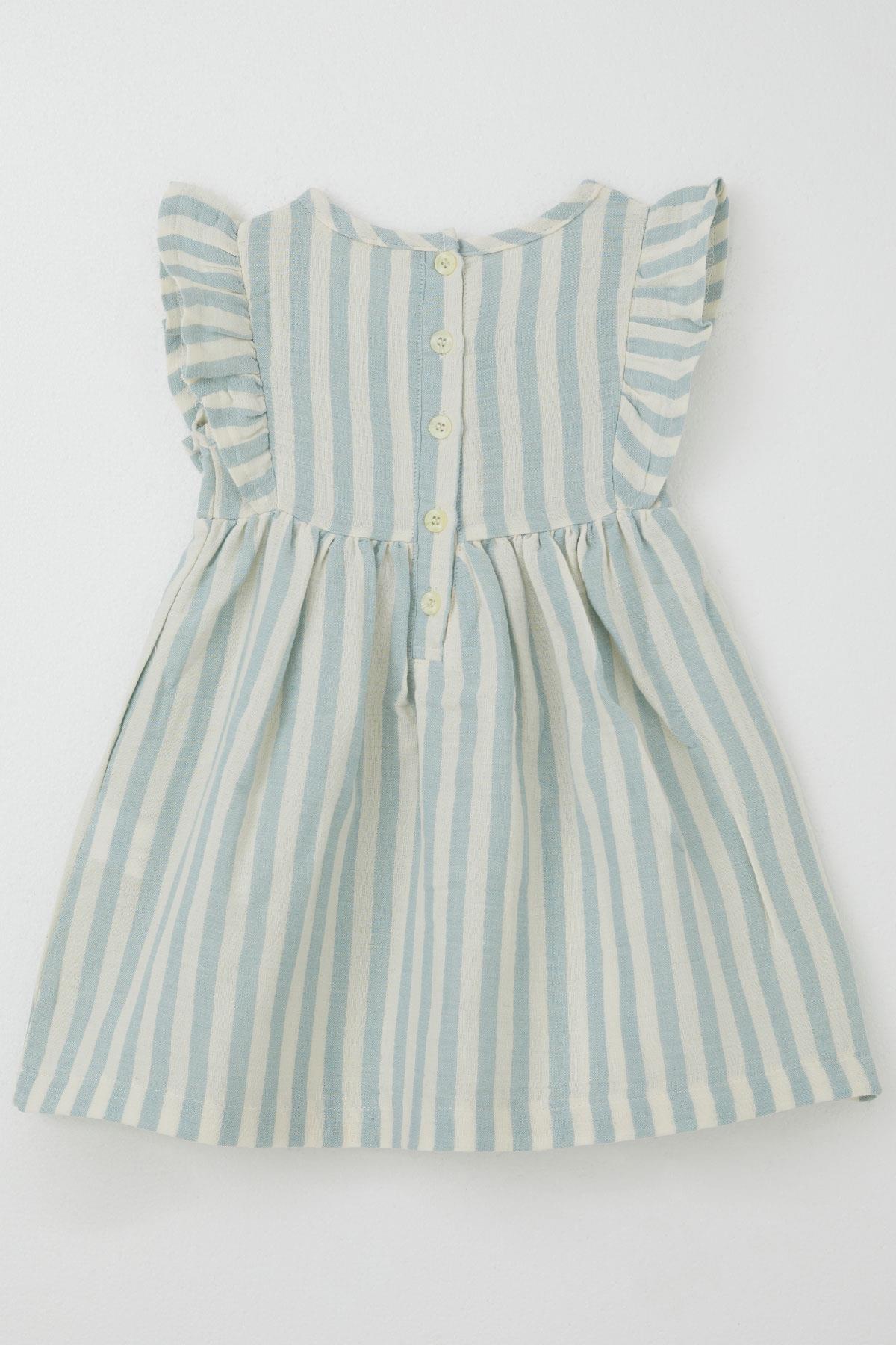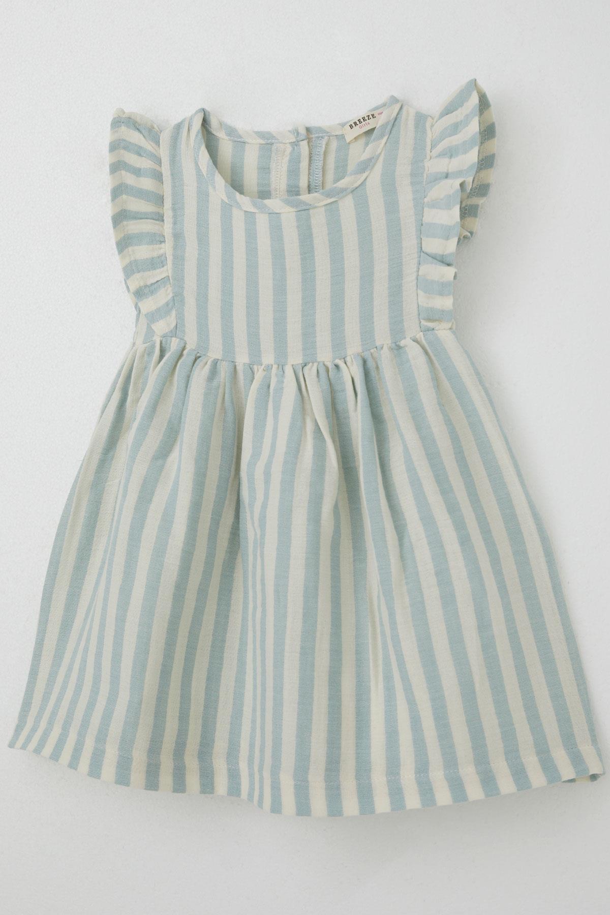 BRE Breeze Girl Dress with Back Button Detail and Frilly Sleeve, 3-8 Years, Beige - Trieste