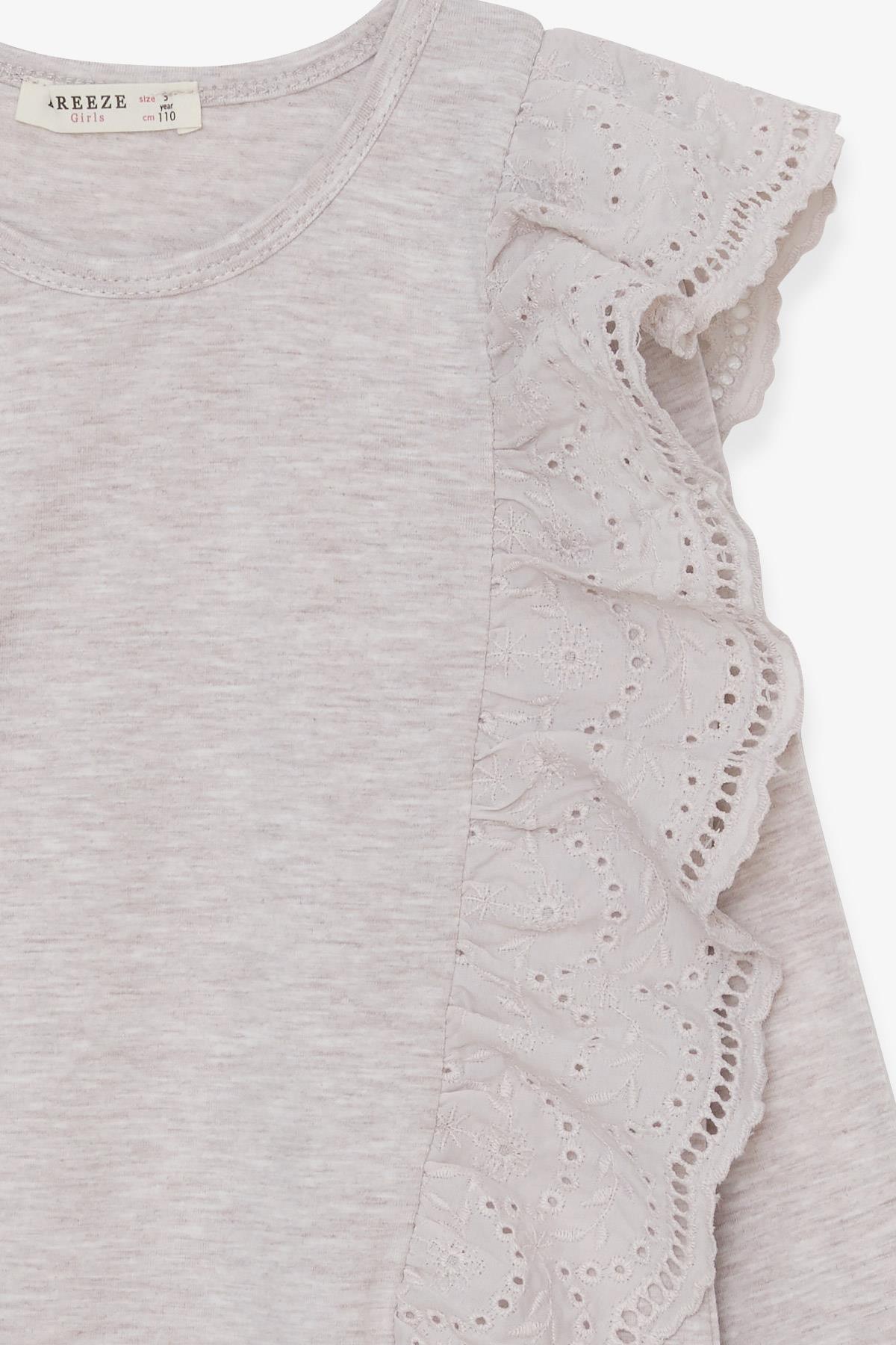 BRE Breeze Girl's Blouse with Lace 50 Years, Beige Melange - Castelldefels