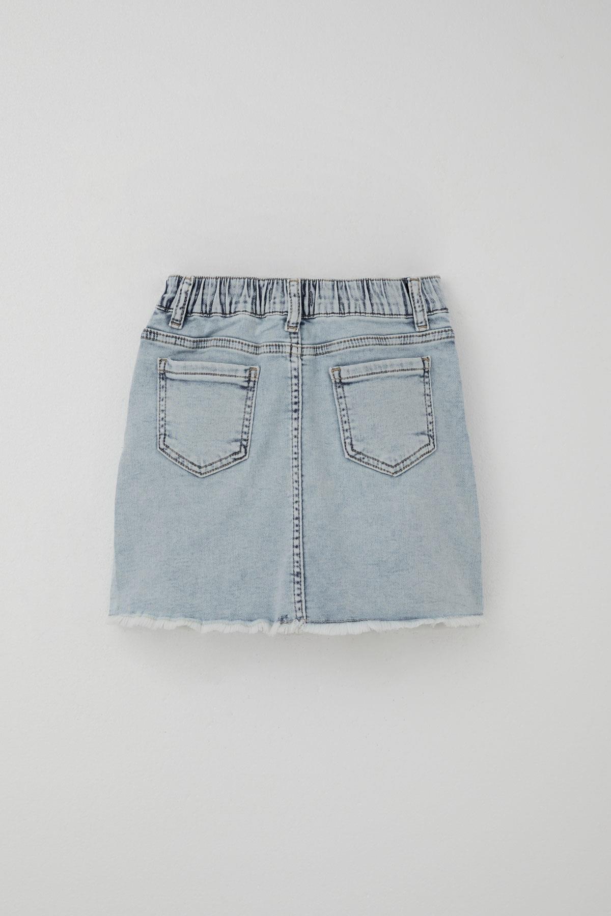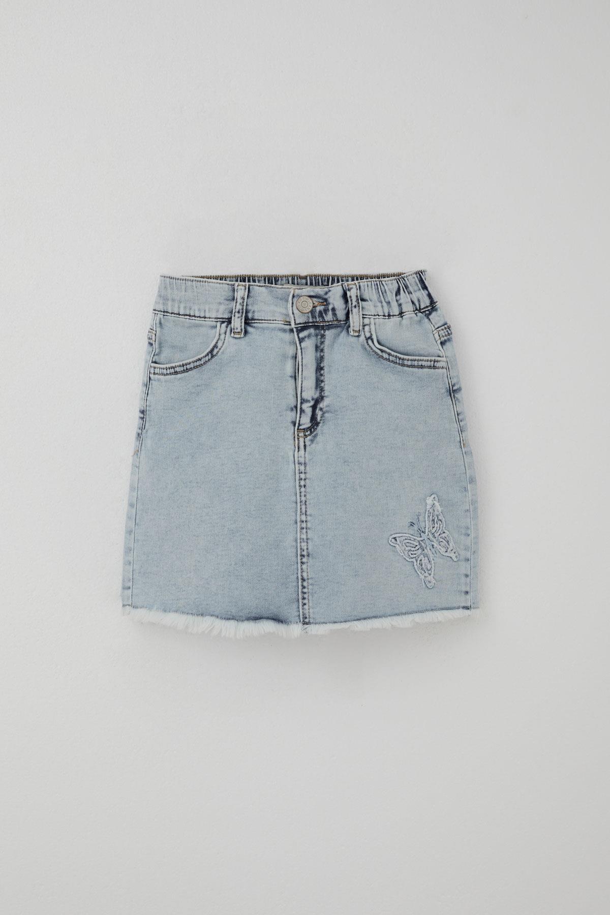 BRE Breeze Girl's Denim Skirt with Butterfly Embroidery and Button Detail, 60 Years, Light Blue - Petatlán