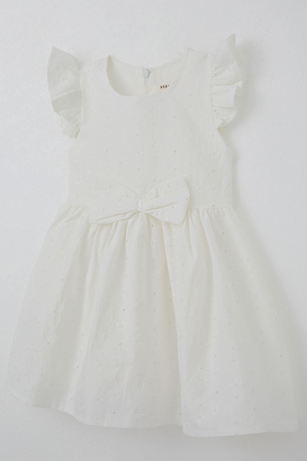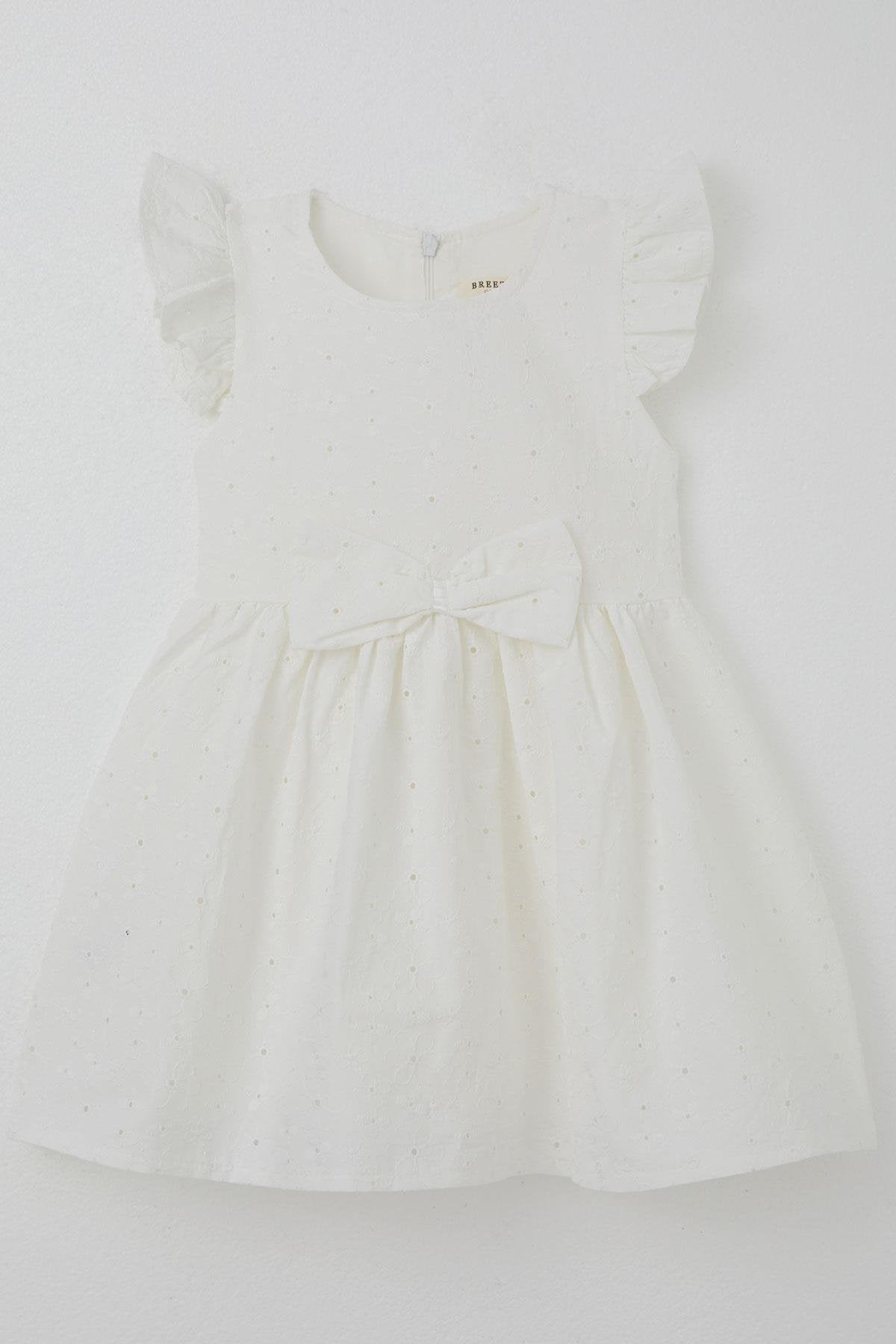 BRE Breeze Girl's Dress with Flower Embroidery and Bow Accessory, 2-6 Years, Ecru - Ameca