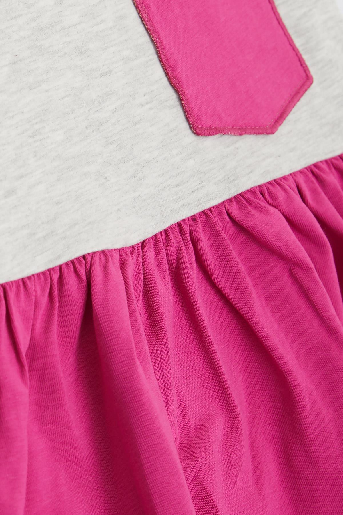 BRE Breeze Girl's Dress with Pocket Glittery Cat Print 1.5-5 Years, Light Grey Melange - Blyth