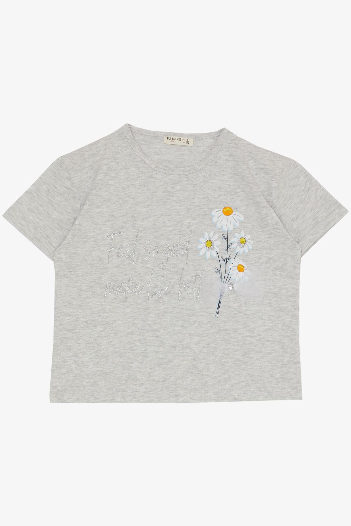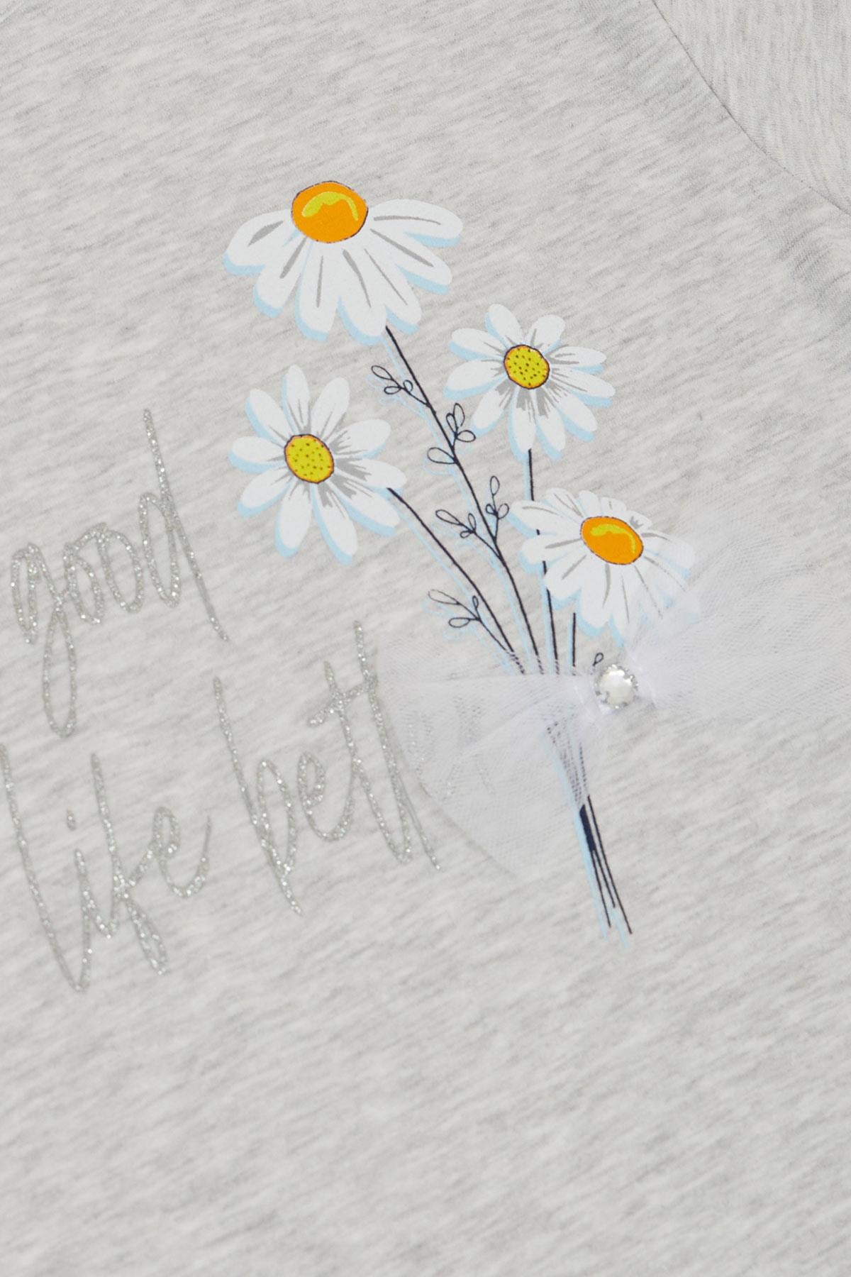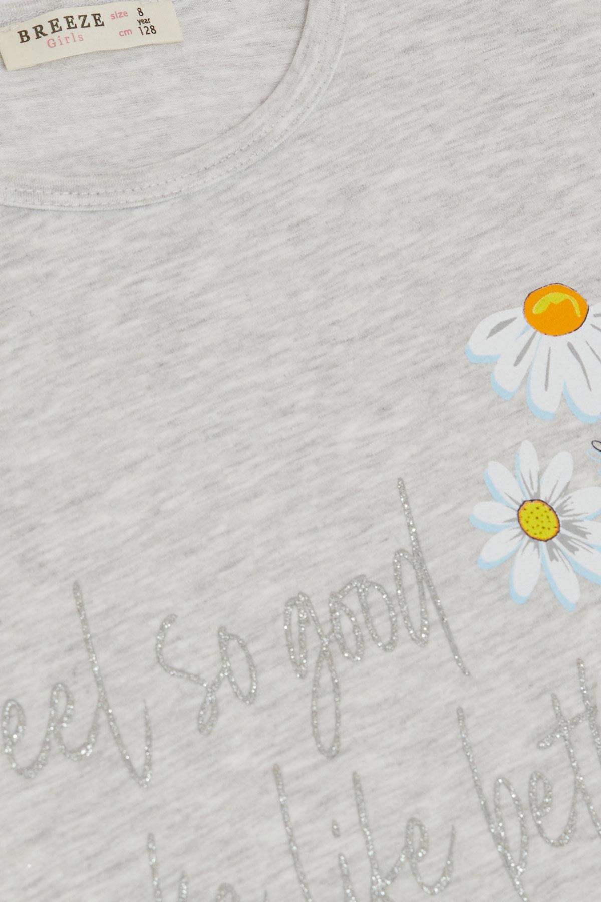 BRE Breeze Girl's Legging Set Flower & Text Printed with Bow 50 Years, Light Grey Melange - Playa del Carmen
