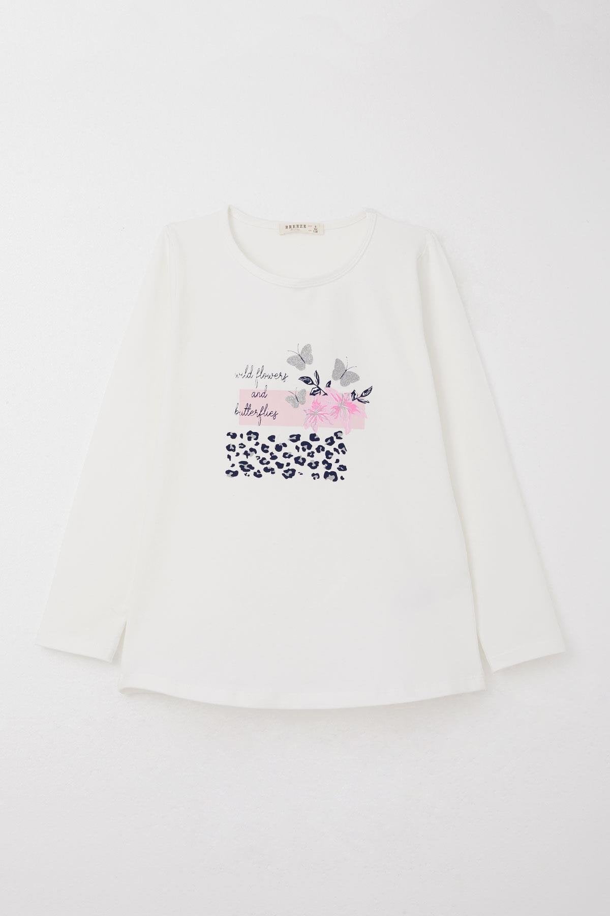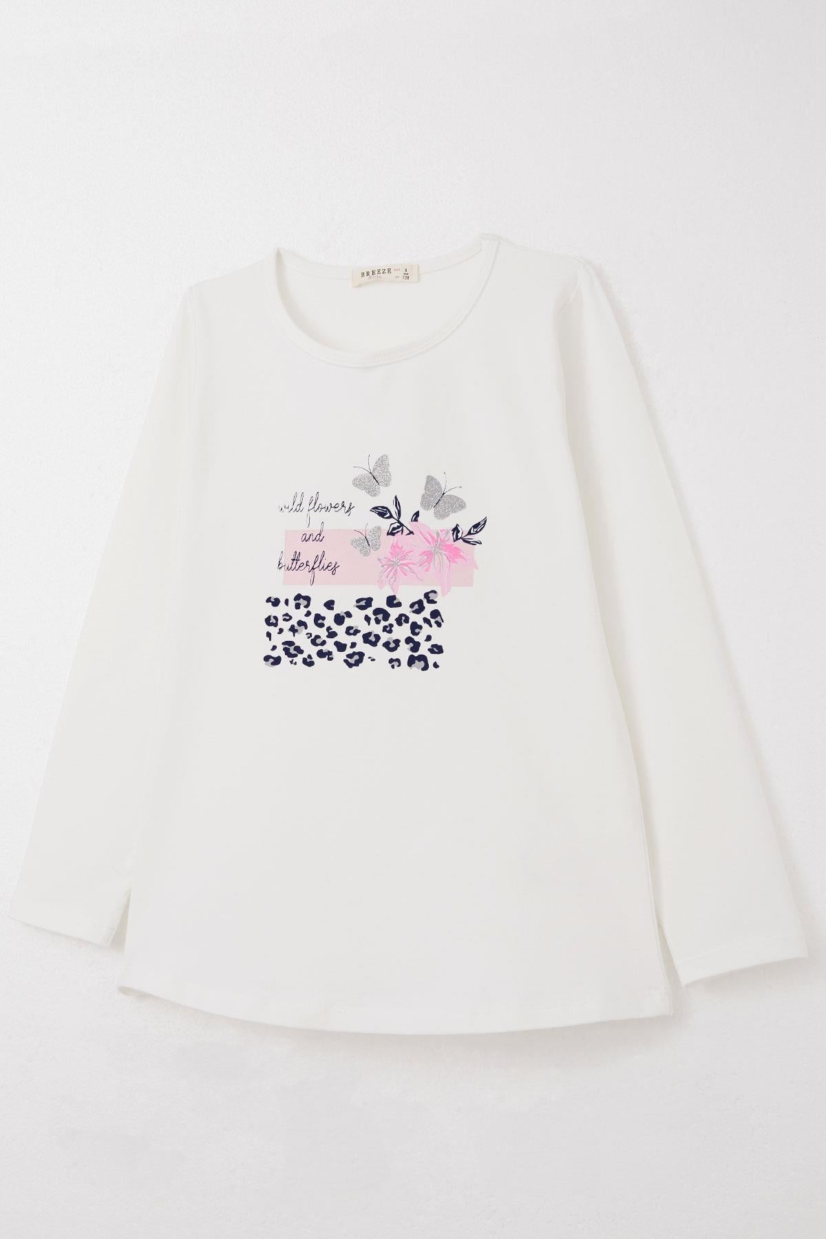 BRE Breeze Girl's Leggings Set Flower & Glitter Butterfly Printed 4-8 Years, White - Zapotlanejo
