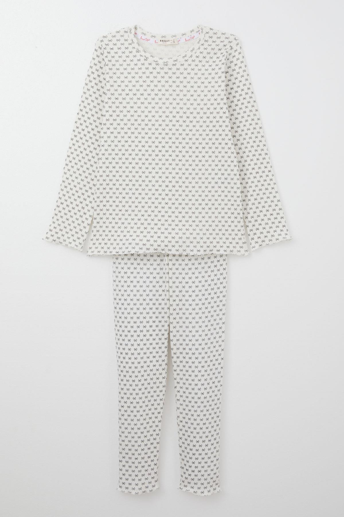 BRE Breeze Girl's Pajama Set with Bow Pattern, 4-8 Years, Beige - Hattingen