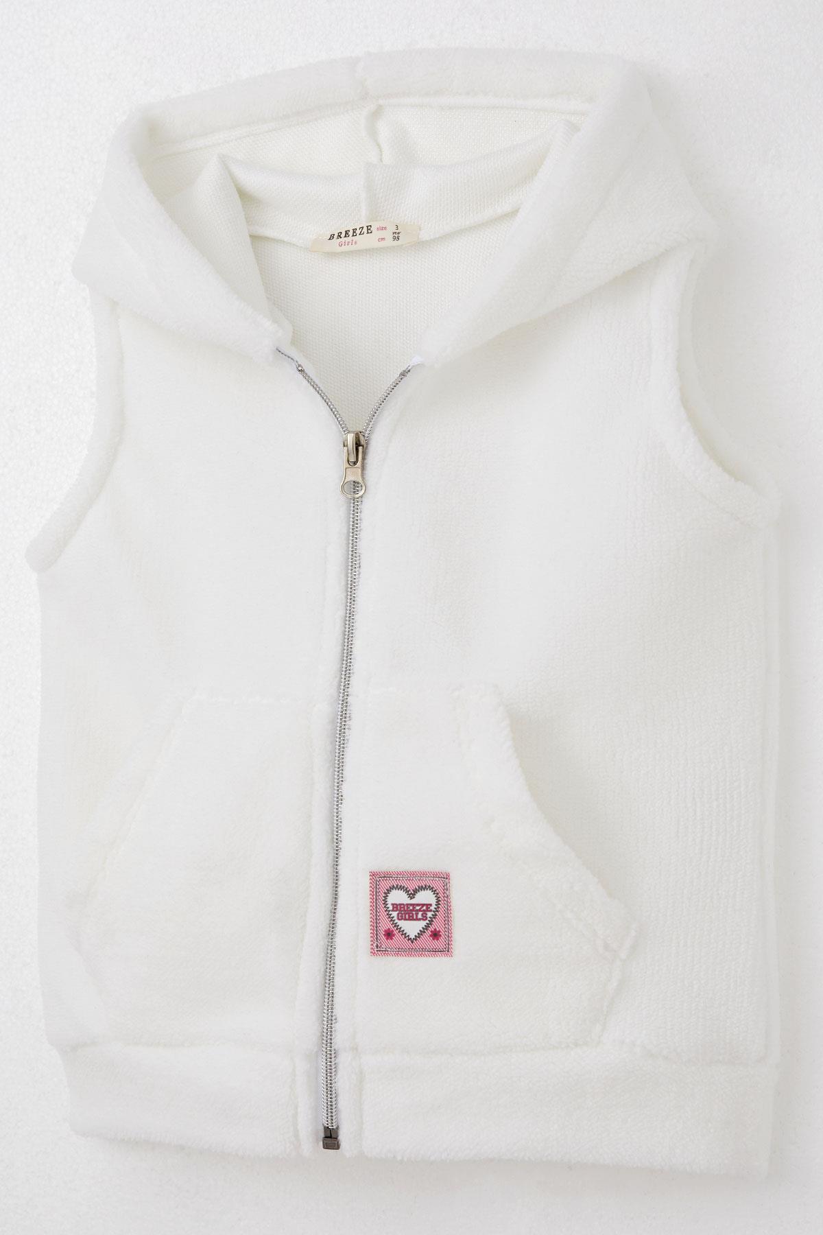BRE Breeze Girl's Polar Vest with Heart Emblem Hooded Pocketed 3-8 Years, White - Watsonville