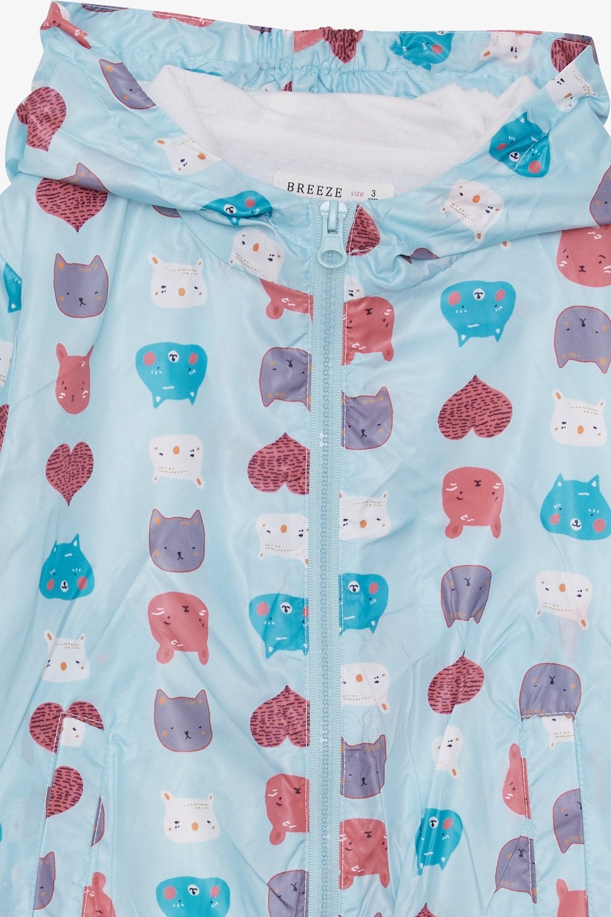 BRE Breeze Girl's Raincoat with Animal Pattern, 1-6 Years, Light Blue - Vista