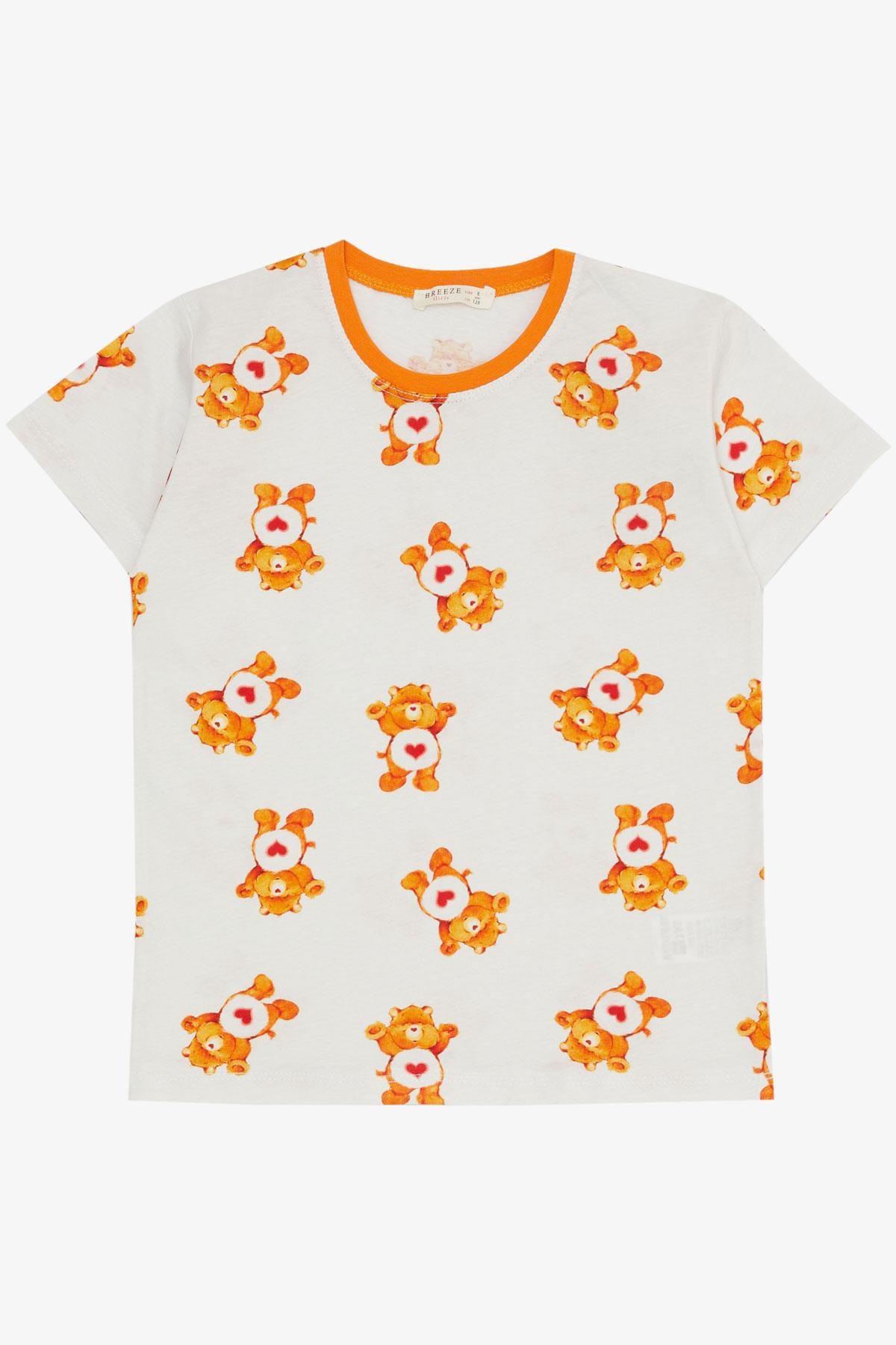 BRE Breeze Girl's Shorts Pajama Set Heart Patterned Baby Bear Design 4-8 Years, White - Brisbane