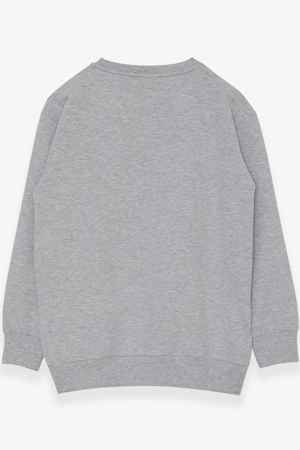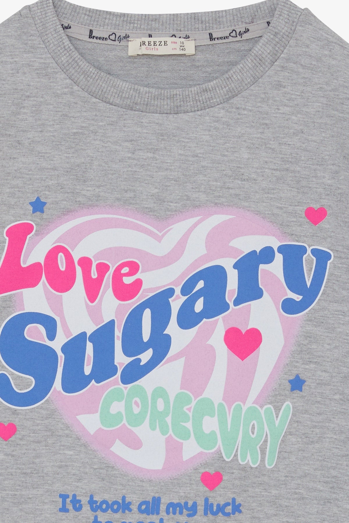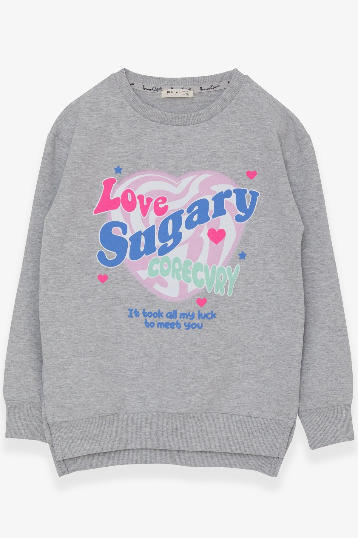 BRE Breeze Girl's Sweatshirt with Printed Writing and Slit, 94 Years, Light Grey Melange - Pombal