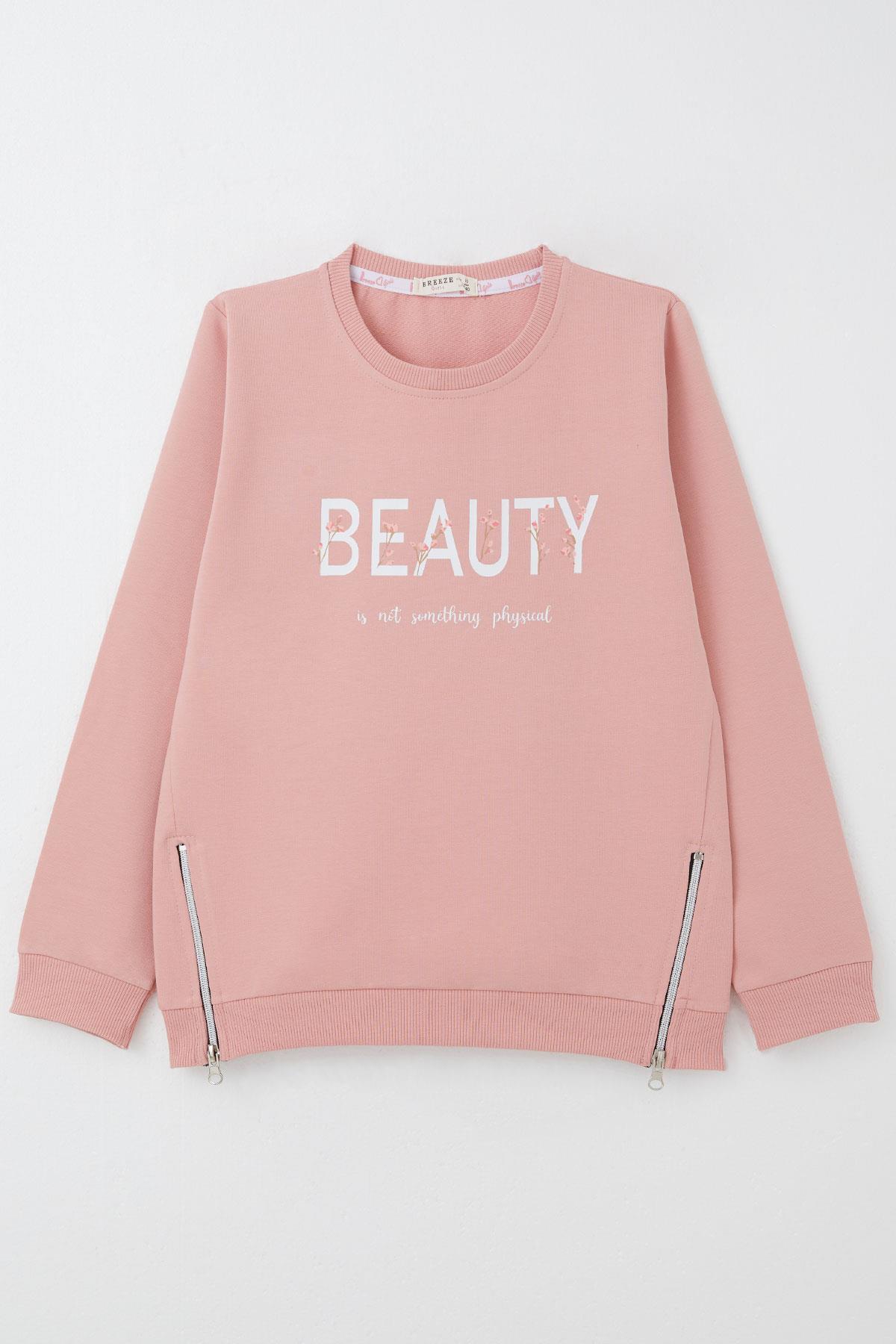 BRE Breeze Girl's Sweatshirt with Printed Writing, Zipper Detail on the Sides, 94 Years, Rose Pink - Huamantla