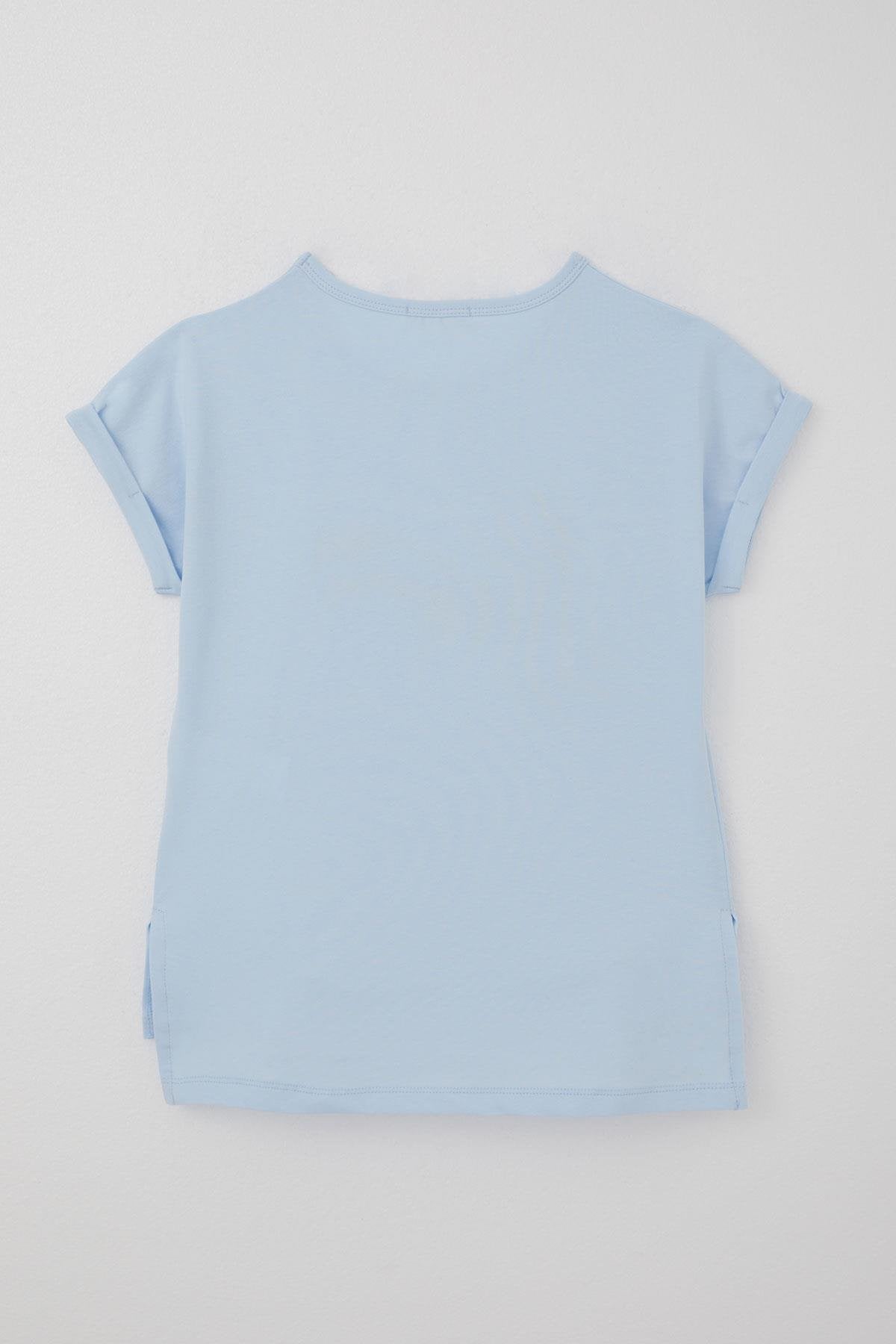 BRE Breeze Girl's T-Shirt Embossed Text Printed with Slit 106 Years, Light Blue - Berkeley